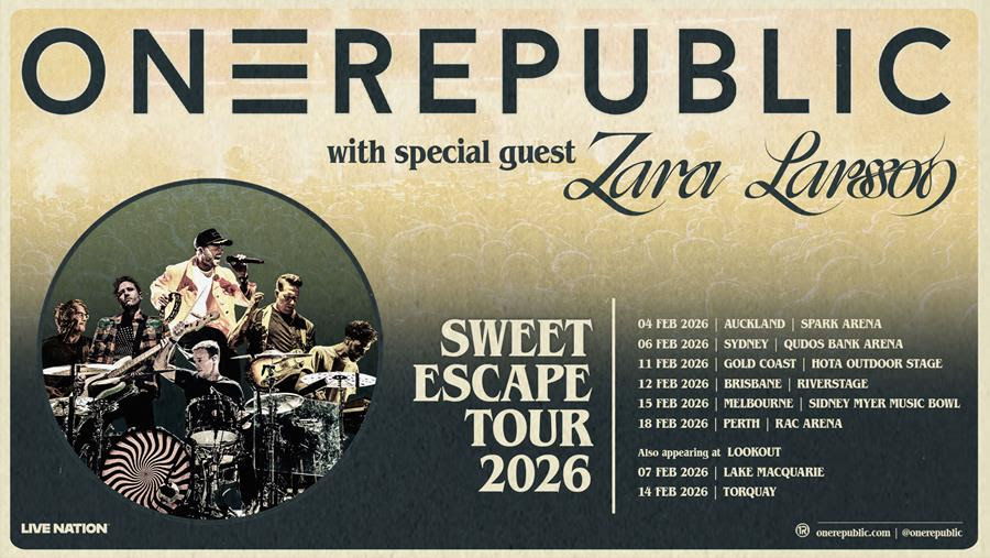 OneRepublic reviendra en Australie et en Nouvelle-Zélande en février 2026 et apportera leur Sweet East Tour dans les arènes et les villes de plein air dans toute la région. En tant qu'invité spécial, la pop star suédoise Zara Larsson est pour vous et marque vos débuts tant attendus en direct dans les deux pays.