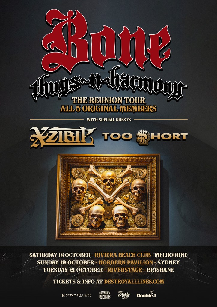 Plus de trois décennies, depuis qu'ils ont changé le son du hip-hop, Bone Thugs-N-Harmony a été dans un nouveau chapitre dans un nouveau, revitalisé et prêt à faire. L'équipage américain décerné au Grammy Award a confirmé qu'ils retourneront en Australie en octobre en octobre pour voir un certain nombre d'expositions spéciales avec la liste originale: Bizzy Bone, Wish Bone, Layzie Bone, Krayzie Bone et Fleisch-N-Bone.