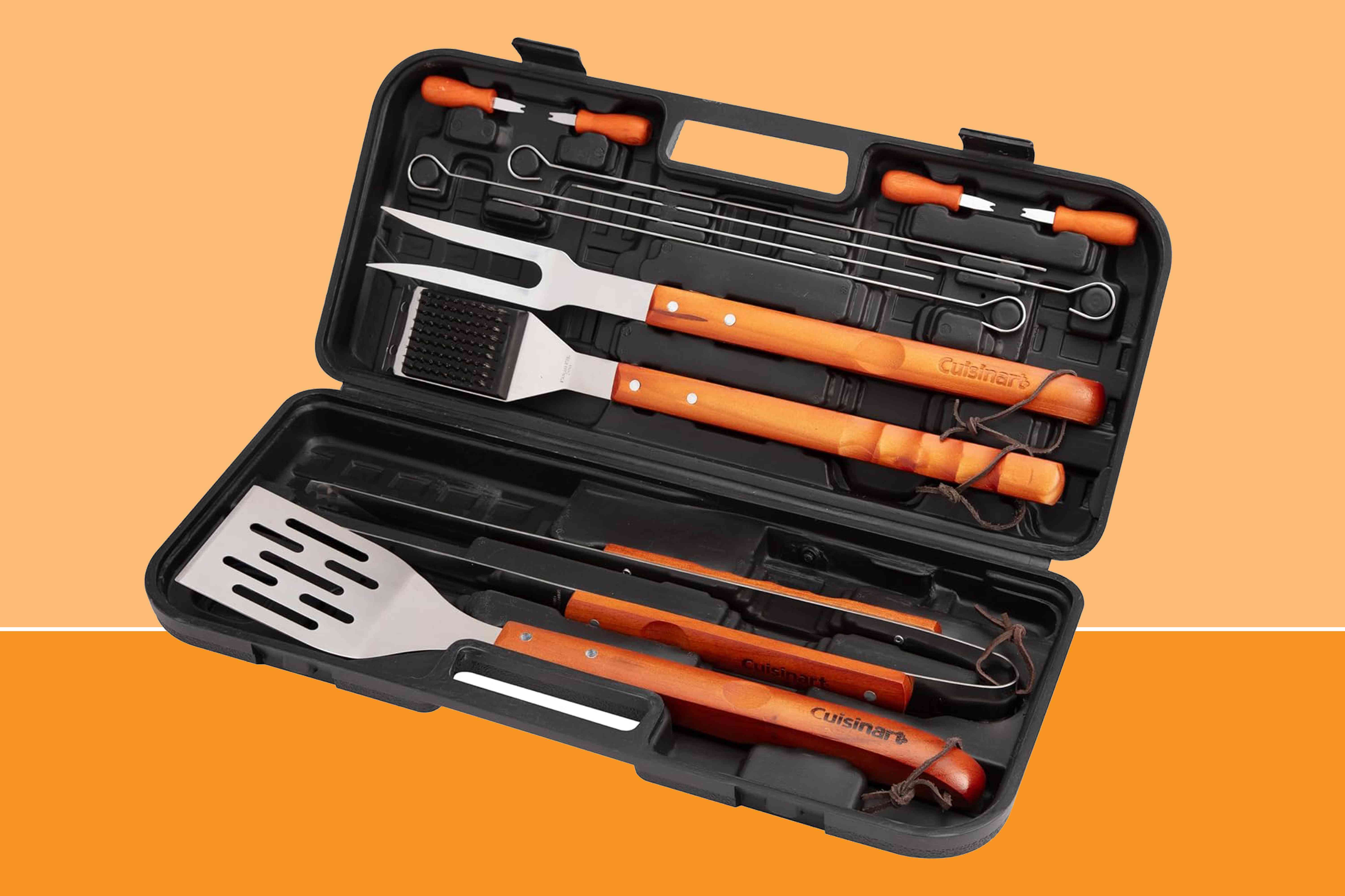 L'ensemble des grillades est livré avec 12 outils. Tout le monde est en acier inoxydable et la plupart d'entre eux sont livrés avec des poignées en bois polies. Un acheteur heureux a écrit: «Les poignées en bois sont très confortables à garder et [the tools] sont la taille parfaite pour le stockage sous mon gril. ”