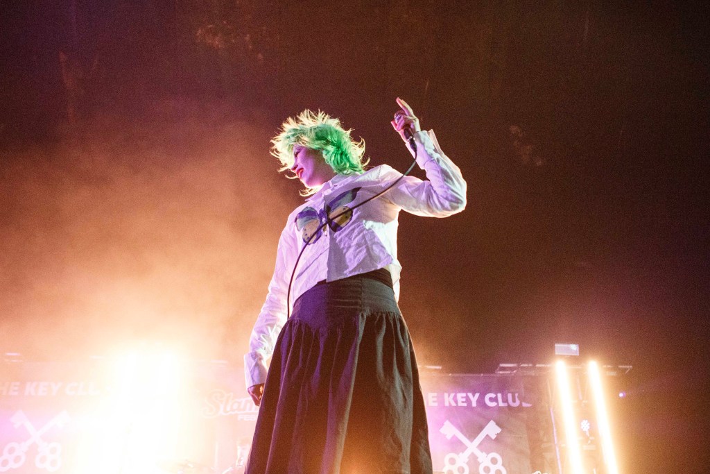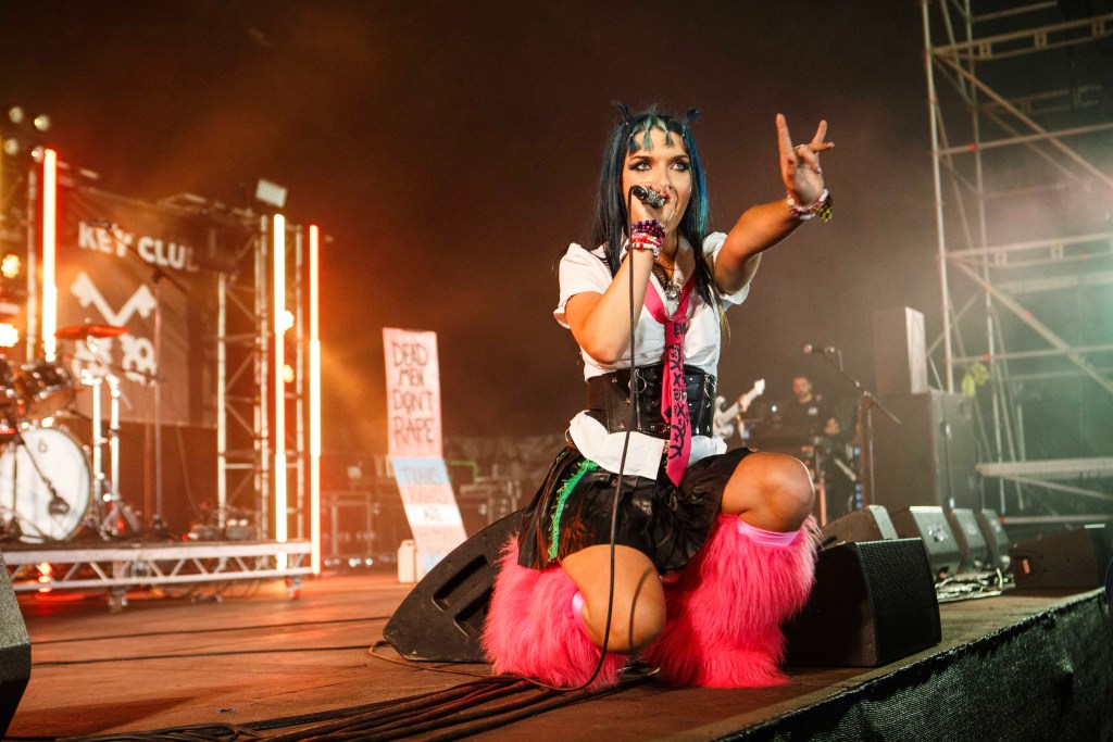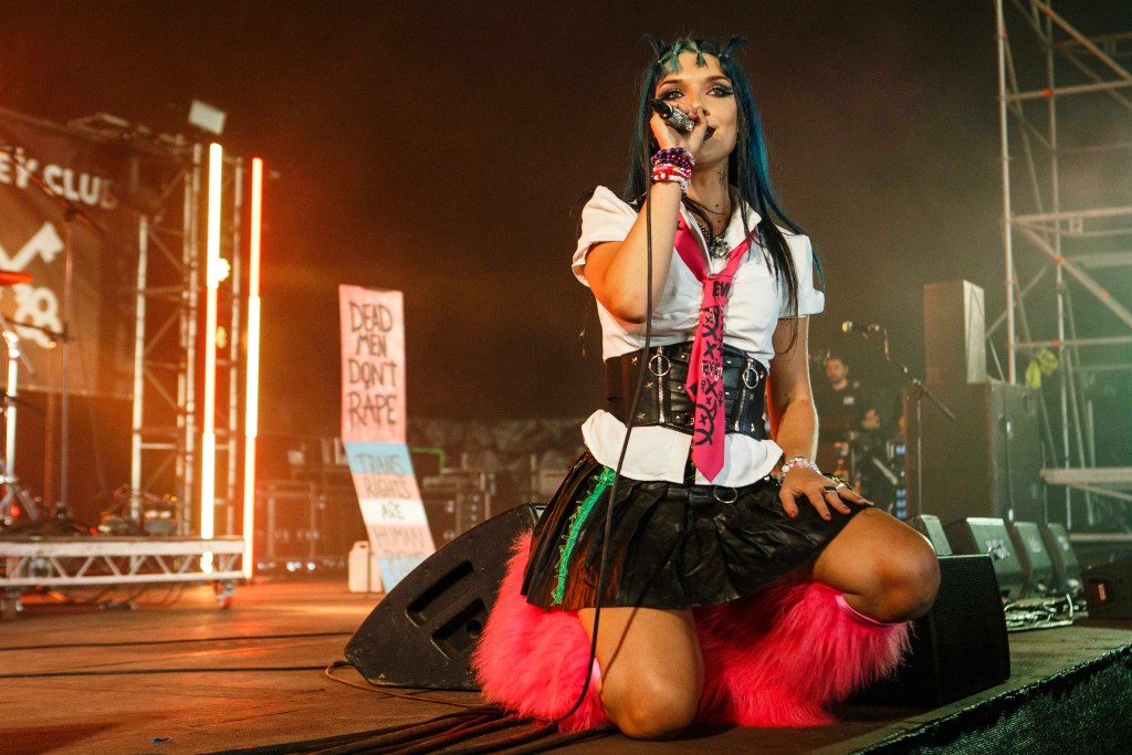Mulligan chaud (4/10) ne sont pas tout à fait notre tasse de thé, nous avons donc quitté le set tôt pour aller à la scène Key Club pour l'attraper Delilah Bon“Êtes-vous prêt pour la colère féminine?” Elle crie. Delilah Bon fournit une colère féministe sansapologue avec une confiance ferme – rien ne fait sur le chemin. Elle commande la scène avec une intensité pure et tire le hip-hop et le punk de manière transparente ensemble. Le message puissant de 'Les hommes morts ne s'y violent pas«Vise l'un de vos morceaux et enflamme la foule. Une performance courageuse et inoubliable qui laisse une influence durable. 9/10