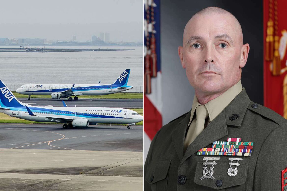 - Un Marine américain de 20 ans a collé un homme sur un vol All Nippon Airways de Tokyo à Houston lorsqu'il a affirmé qu'un homme avait tenté d'ouvrir la porte de sortie d'urgence