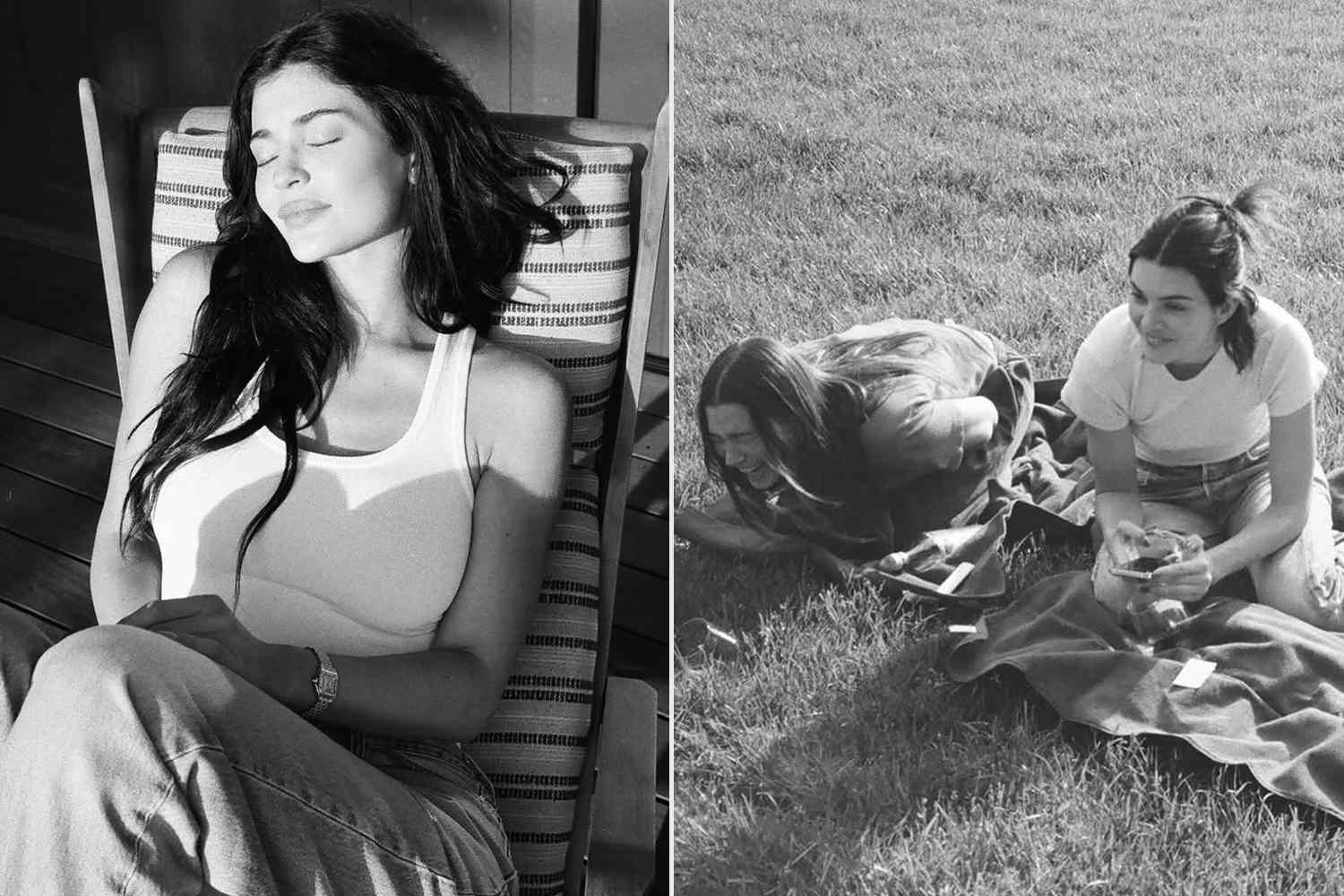 La collection des photos a commencé par une photo en noir et blanc de Jenner, qui avait l'air heureuse lorsqu'elle était assise à l'extérieur sur une chaise de pont. Sur la première photo, elle portait un réservoir musculaire blanc avec un jean.