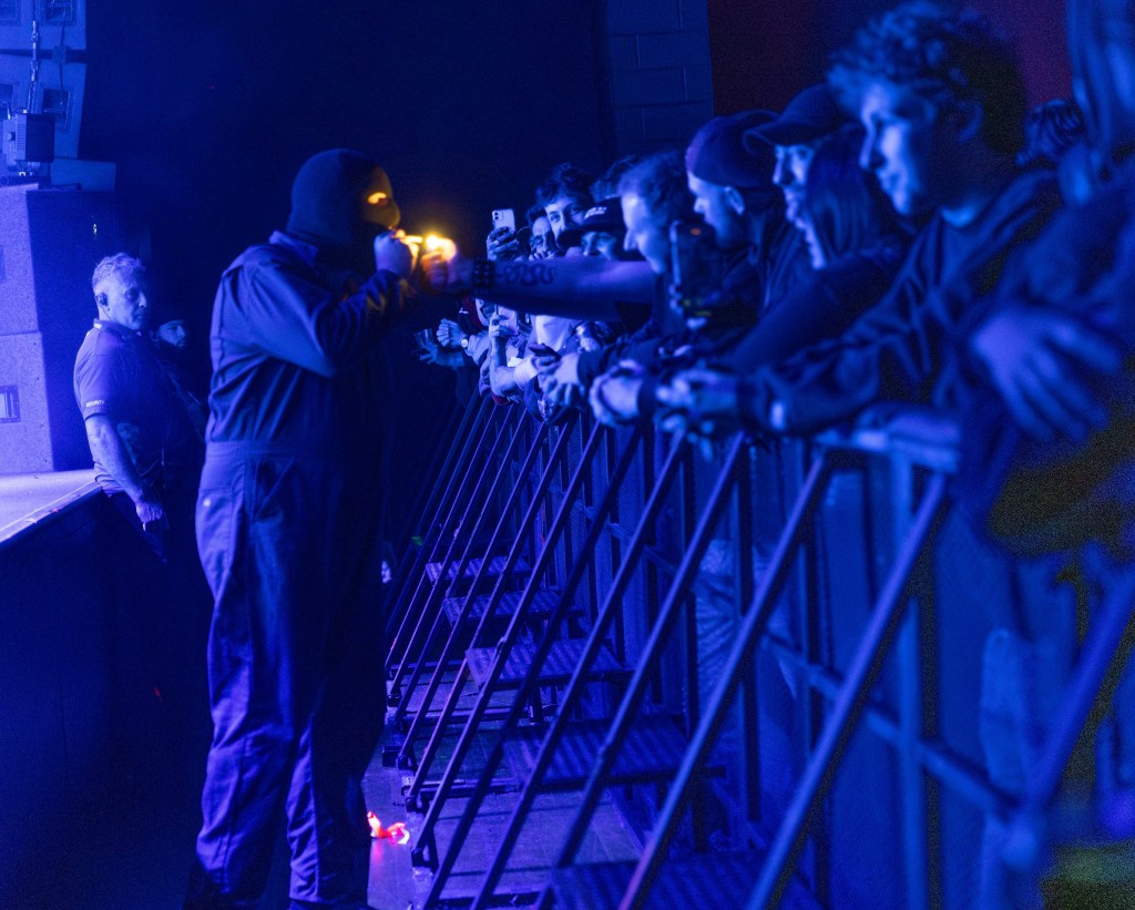 La première soirée est le DJ Driver Tonight, qui porte bien sûr un cagoule et a une autre personne, également déguisée en cagoule, qui le filme sur une came de téléphone portable vintage. Pas de decks pour ce DJ; Au lieu de cela, il est assis sur un tabouret à une table et semble utiliser son téléphone portable pour afficher un ensemble qui flotte le jeu entre la danse folklorique et le jazz. Il n'y a pas de mélange – seulement soudainement, des transitions inquiétantes. À un moment donné, il boit une bière, dans un autre, il entre dans la foule pour laisser sa cigarette illuminer sa cigarette. Et puis pourquoi pas qu'il surfait jusqu'à l'arrière du U -Bahn. Le lieu est plein et oui – il y a des gens qui sont déguisés en clowns. C'est vraiment bizarre.