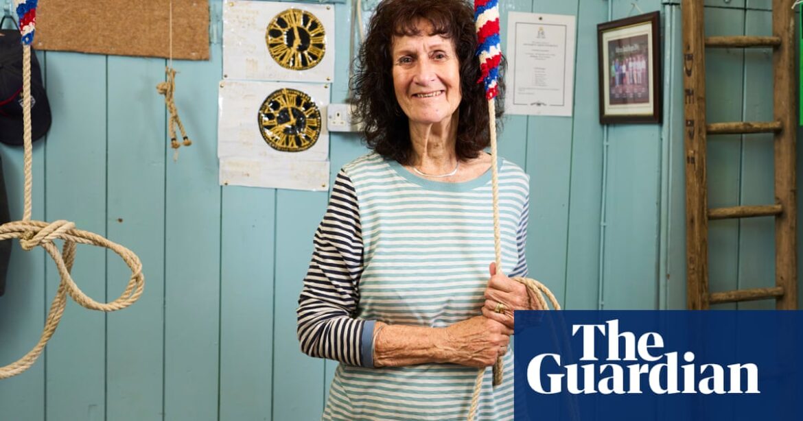 “J'ai toujours voulu des défis”, dit-elle. “Mais on vous enseigne. Ils sont très patients, l'autre Bellinger. Vous n'avez pas besoin d'être musical – juste pouvoir compter et avoir un sentiment de rythme.” L'apprentissage des méthodes nécessite une mise au point; La sonnerie améliore l'équilibre. Et: “C'est social … vous avez un rire, une conversation, vous sonnez les cloches – puis allez au pub.
