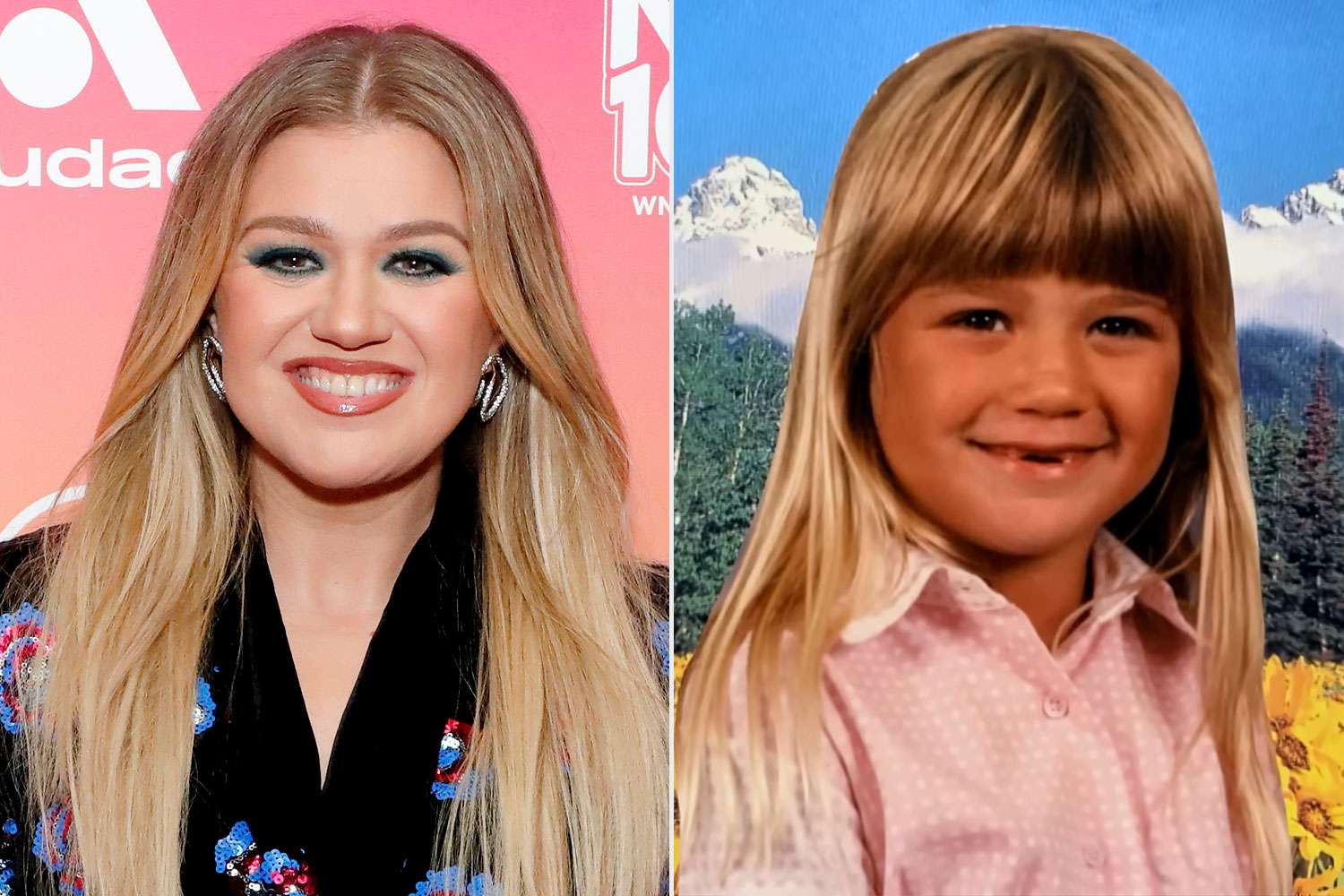 - À la suite de son talk-show le 12 juin, Kelly Clarkson a révélé que sa mère avait collé sa photo d'école en arrière-plan pittoresque pour reproduire des photos de vacances en famille