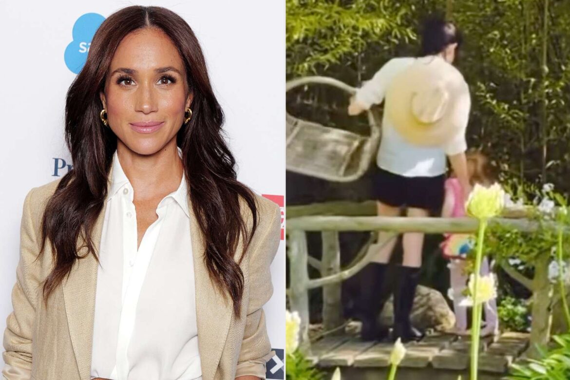 Le matériau du film a clignoté de Meghan avec des assiettes avec des assiettes dans ses mains, puis a montré qu'elle se tenait sur un pont avec la princesse Lilibet.