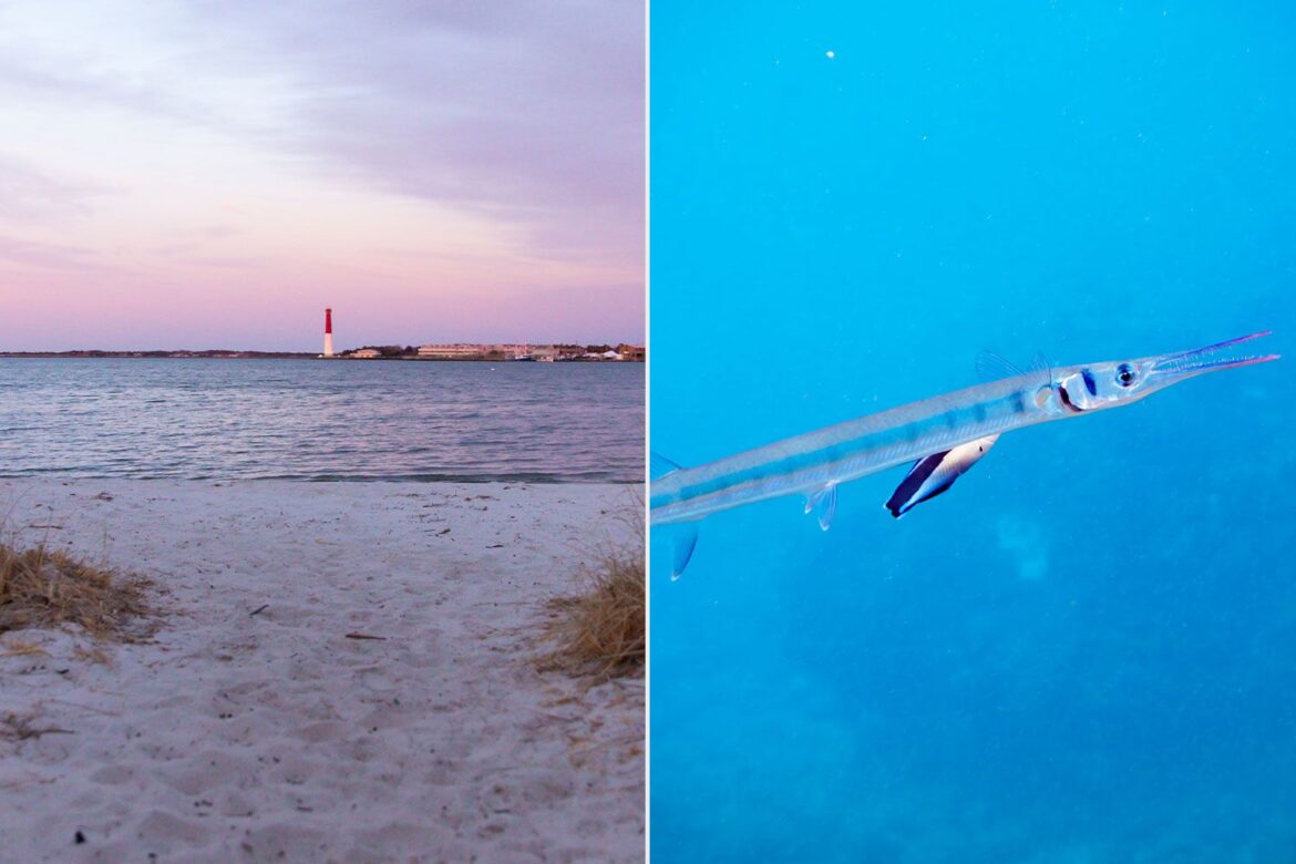 Selon le Delaware Department of Natural Resources and Environmental Control (DNREC), les poissons d'aiguille (et Dogefic, un moyen étroitement lié) se trouvent principalement dans les eaux plates, les baies et les coups de rivière près du rivage, souvent entre 8 et 18 pouces et peuvent sauter hors de l'eau s'ils se sentent menacés s'ils se sentent menacés.