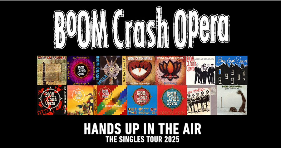 Il y a 40 ans, Boom Crash Opera a frappé leur foulée avec une chaîne de singles anthémiques épiques en commençant par les débuts du groupe, “ Great Wall '' qui a atteint le top dix dans les charts australiens, suivis d'une chaîne de succès, dont 'Dancing in the Storm', “ The Cityflat '', “ Get Of The House ''.