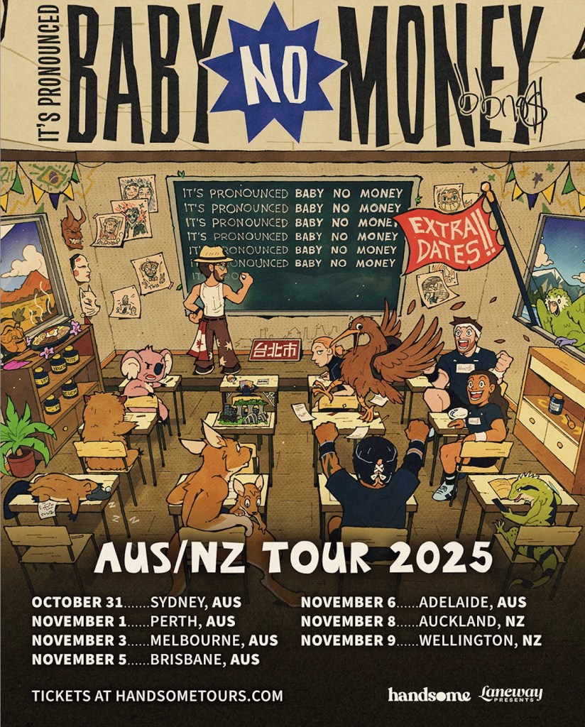 L'artiste canadien au genre Rustic Bbno $ a annoncé en octobre-novembre un certain nombre de spectacles en direct en Australie et en Nouvelle-Zélande, qui est présenté par Pretty Tours and Laneway Gifts.