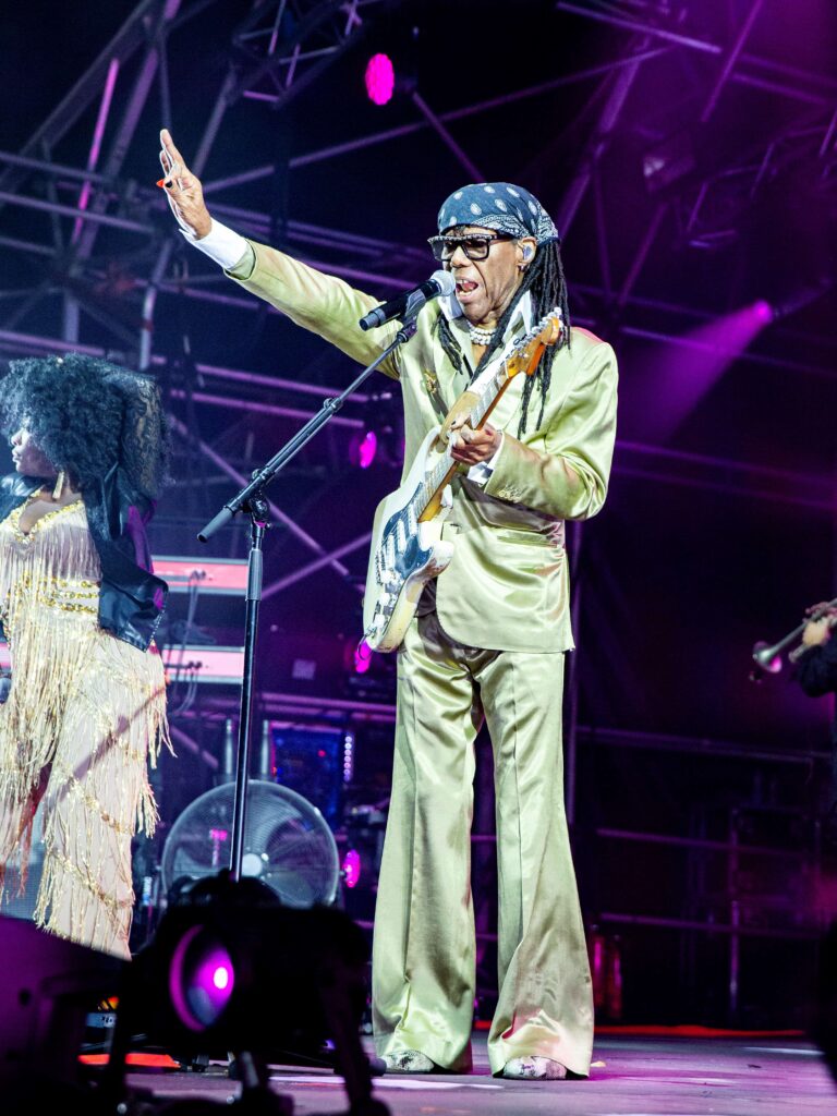La ligne actuelle de Rodgers -Up pour Chic crée l'un des groupes les plus proches que vous verrez. À l'avant, le grand producteur a flanqué des deux côtés de Naomi Rodgers et Audrey Martells, qui a poursuivi la classe de maître chantante que Jalen Ngonda a commencé plus tôt dans la soirée. Ce sont tous deux des centrales électriques avec des sacs qui offrent certaines des meilleures chansons radio à proximité. Commencer par Le freakPuis une première première première minutes de classique induisant la danse Tout le monde dansesuivi de Danse, danse, danse (Yowsah, Yowsah, Yowsah)Puis directement dans Je veux ton amour – Il est difficile d'imaginer qu'un ensemble qui enflamme le mouvement de la quantité plus efficacement.
