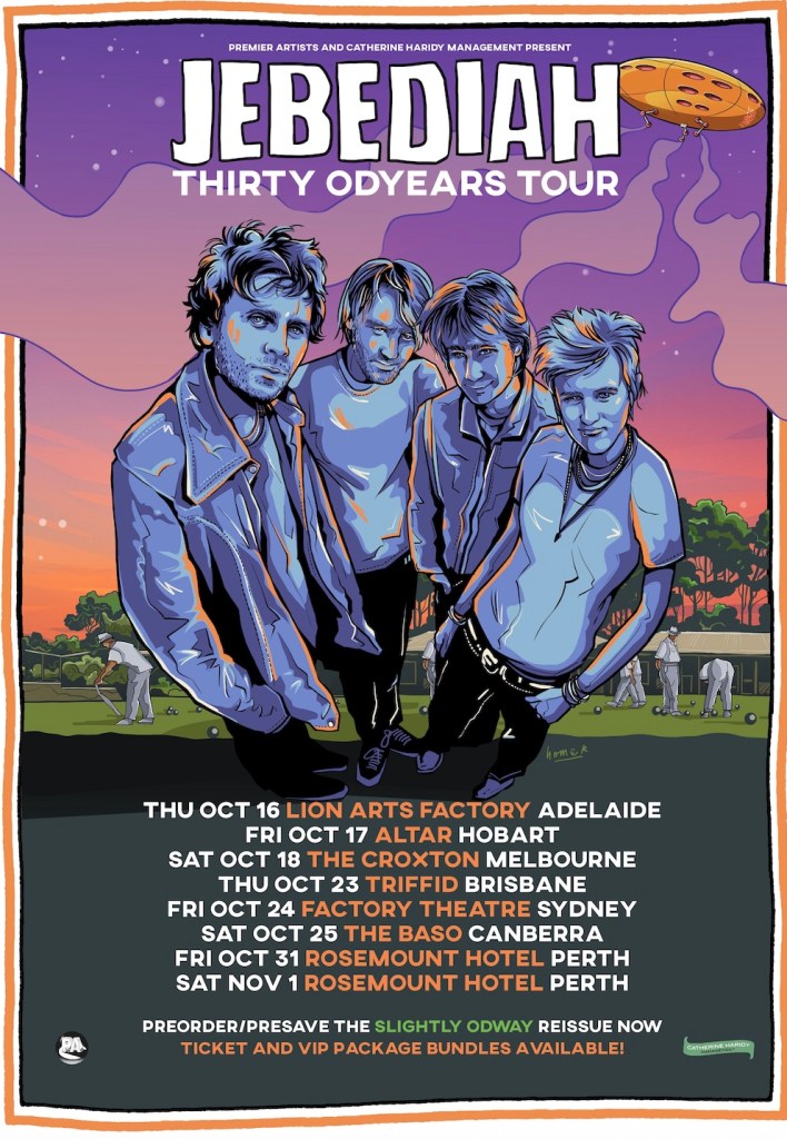 Jebediah marquera trois décennies en tant que groupe avec une tournée nationale et un certain nombre de nouvelles éditions en vinyle qui sont annoncées aujourd'hui. La tournée Trente Odyars a lieu en octobre et novembre 2025, avec des spectacles pour Adelaide, Hobart, Melbourne, Brisbane, Sydney, Canberra et deux données sur la ville natale à Perth.