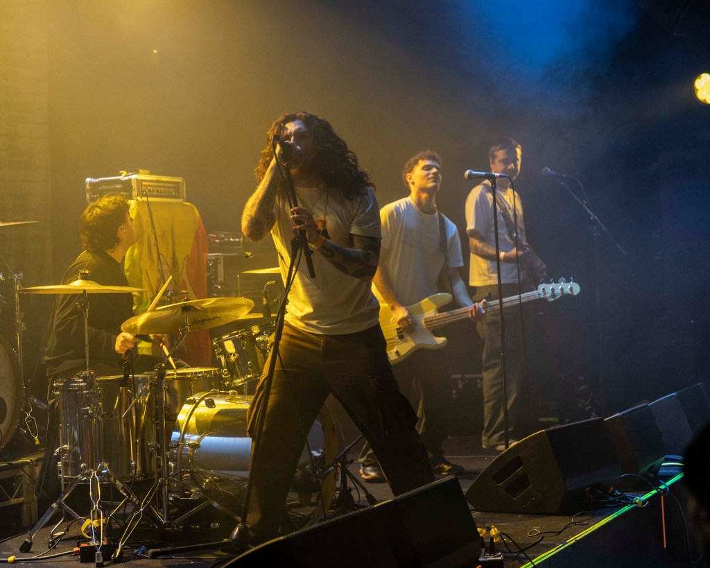 Lorsque Touché Amoré entre enfin sur la scène, les sons de la “baignade” de Cumbawumba vont. Ils se relâchent dans “Tilde” et se sont soudainement intensifiés – la précision dynamique du groupe se verrouille comme une horloge, tandis que la voix de Jeremy Bolm avec la même conviction blessée qu'elle a toujours traversé Din. Le matériau de Spiral en ligne droite, son dernier LP, est replié en une setlist qui couvre le catalogue du groupe sans se sentir comme une rétrospective. Il n'y a pas de prétexte ici – juste un groupe qui sait exactement ce qu'ils sont et une pièce qui comprend ce que cela signifie. Dans une pièce comme Manning Bar, sans fumée ni spectacle, cette connexion semble plus frappante.