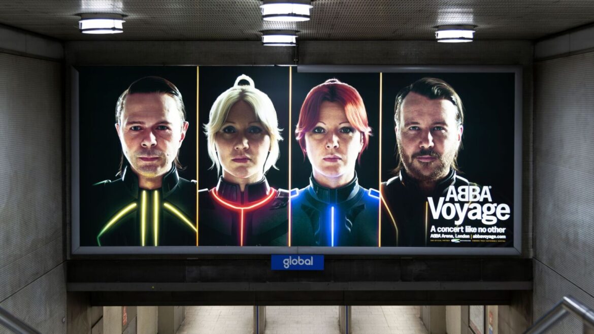 L'affiche pour Voyage ABBA promet un concert comme aucun autre ». La plupart d'entre nous le sauront maintenant parce que ces affiches sont partout. Pendant trois ans, j'avais résisté à ce Léviathan de marketing – je comptais une fois 15 annonces lors de mes déplacements de 10 étages sur le terrain de Londres. La campagne a travaillé avec deux millions de fans qui ont précédemment afflué vers l'ABBA Arena à Stratford. Et maintenant, je suis l'un d'eux.