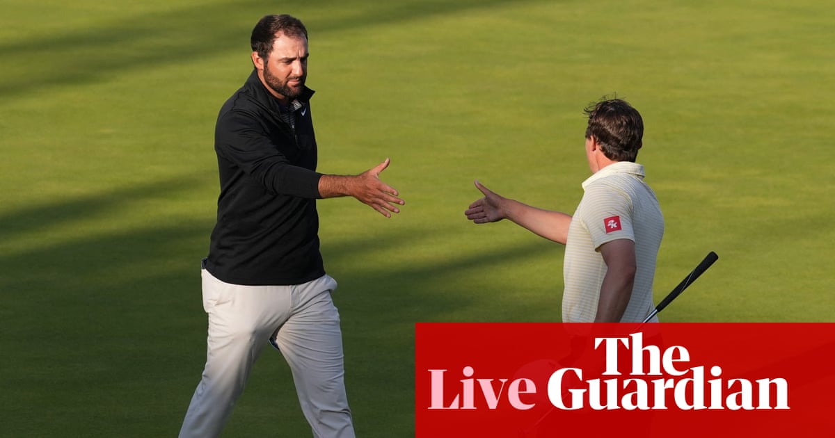 Par for the defending champion Xander Schauffele on 18. He signs for a 66 that’s whisked him from the middle of the pack towards the upper reaches of the leaderboard … and into contention? At -7 for the tournament, he’s probably left it a bit too late, unless Scottie Scheffler does him (and the rest of the field) a big favour at some point. Which simply doesn’t look on the cards … and the world number one’s just thrown another dart at another flag, this time at 10. Anyway, Schauffele is the new clubhouse leader.