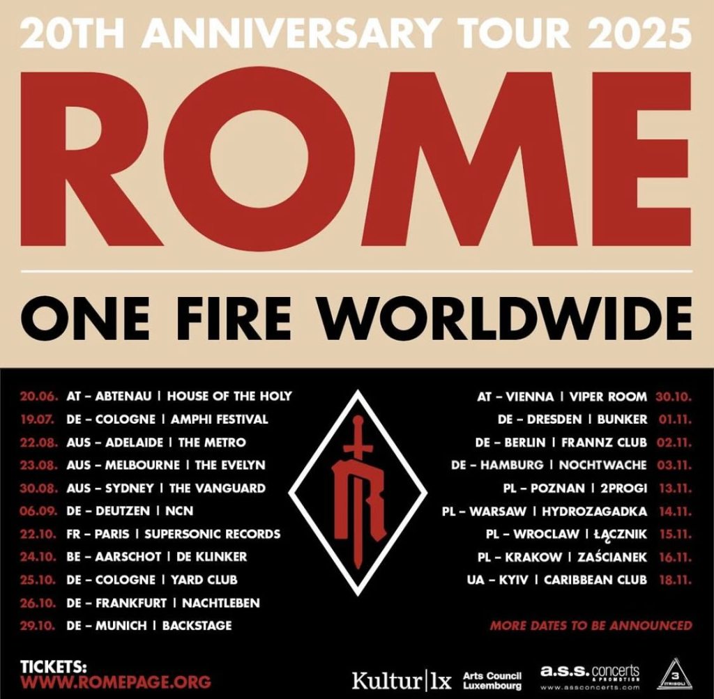 L'artiste Luxembourg Rome a annoncé une première tournée australienne pour 20 ans de musique avec un timbre gothique sombre qui ressemble à un mélange de The, Pete Murphy et éditeurs. Le travail de Jerome Reuter, Rome, a créé une œuvre impressionnante qui a abouti au récent album «Civitas Solis». Reuter dit: