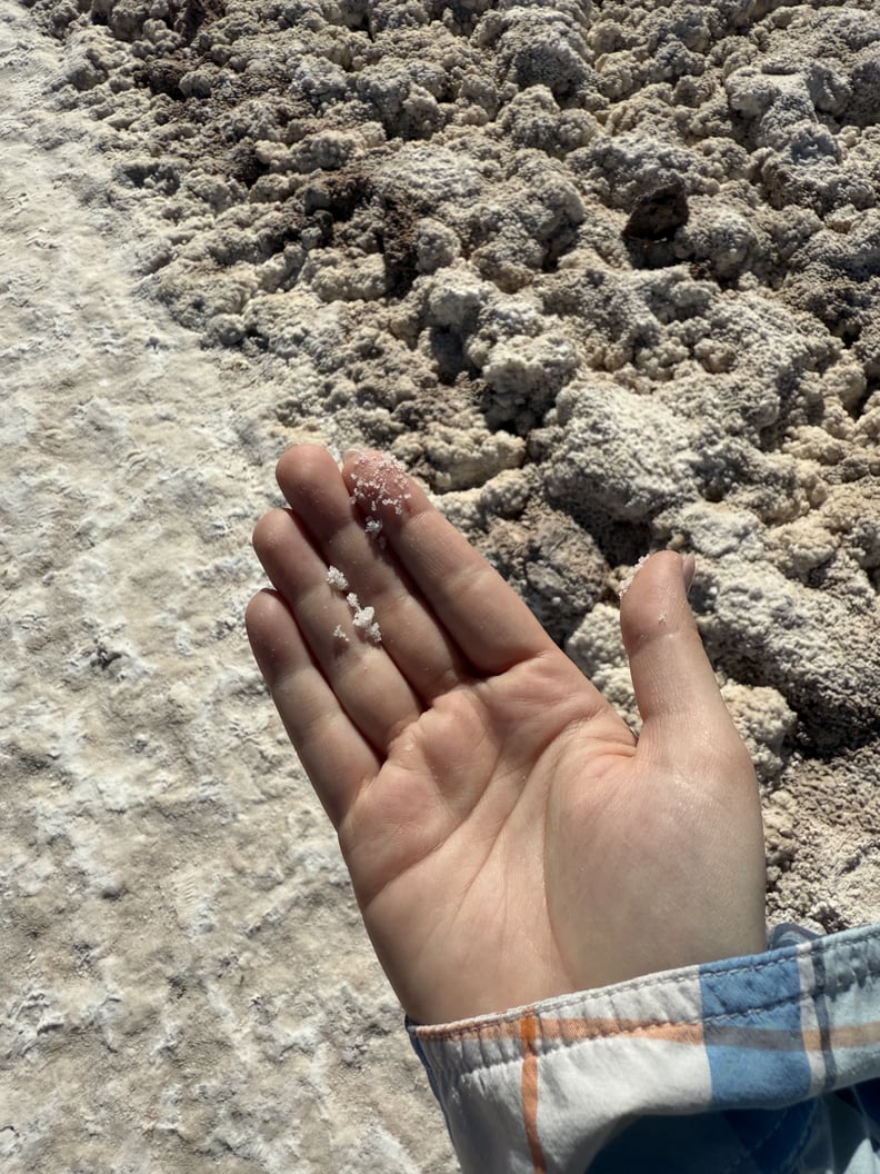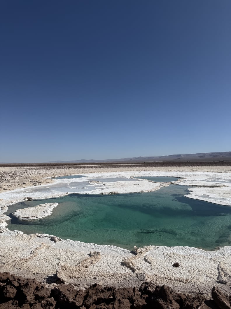 Salt baths occur naturally in a handful of places around the world — the Atacama Desert being one of them. Despite thinking I knew what I was getting myself into, nothing could have prepared me for seeing the natural phenomenon in real life. It was about an hour’s drive from our hotel, the Our Habitas Atacama, in San Pedro, down winding, bumpy dirt roads and nestled between some mountains. The baths came out of nowhere, placed in the middle of a large, flat stretch of land. The surrounding area was all white (because of the salt), and the bright turquoise pools popped against the beige and brown of the mountains and sand.
