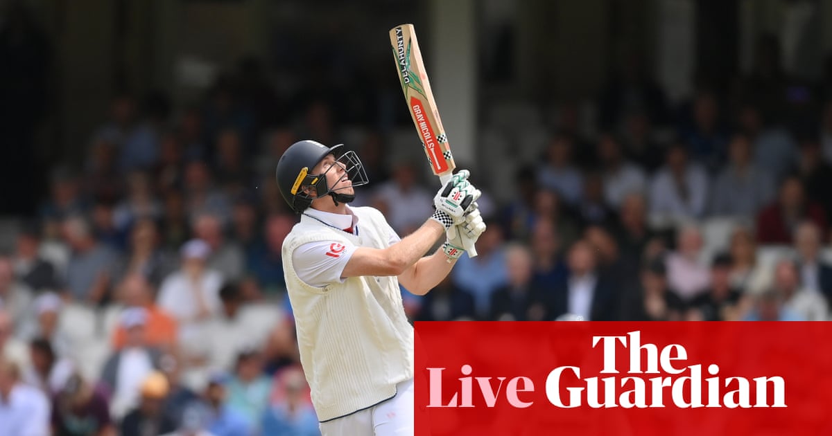 18th over: England 115-1 (Crawley 54, Pope 16) It’s Prasidh from the other end – Siraj won’t like that, I wouldn’t think, but what can Gill do? – and Crawley digs out a yorker to square leg, which earns him one. Pope then fends at one, looking to guide between slip and gully, but diving left, Sudharsan gets there only to allow the ball to burst through his hands. It wasn’t a dolly, but nor was it nails, and he’s there for exactly that eventuality; he looks sick, with good reason.