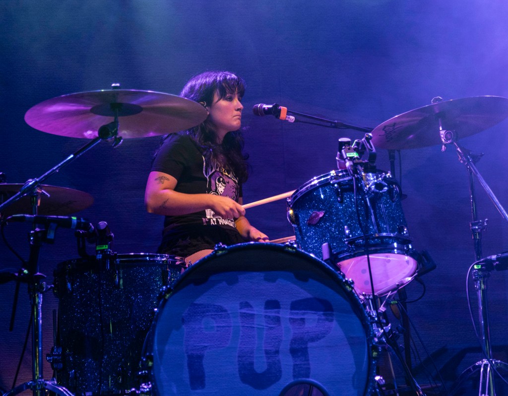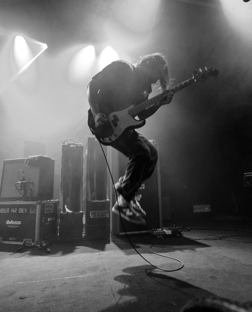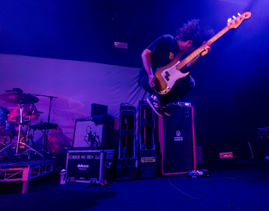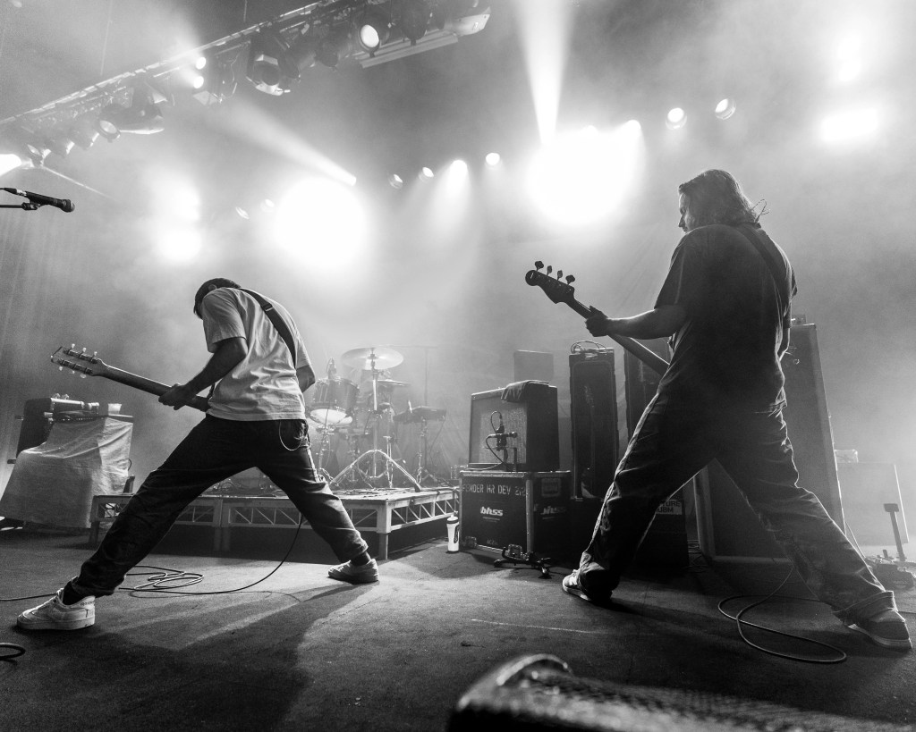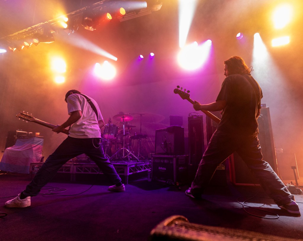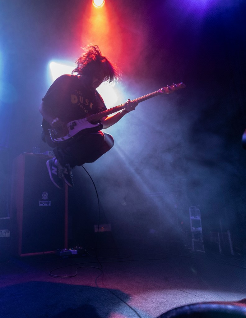 La foule est bruyante, mais synchronisée – un mélange de battements de battements, de fromage cri et de flambées rapides vers la barrière. La batterie de Zack Mykula garde tout serré, tandis que Steve Sladkowski suit son coin de la scène, Guitar Low. Il est en sueur, il est urgent, mais ce n'est pas un chaos – il y a un rythme tacite entre le groupe et la quantité qui maintient la nuit en mouvement.