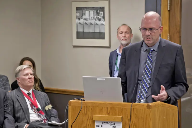 Shane Leverenz testifies at a bill hearing in the North Dakota Capitol in 2023.