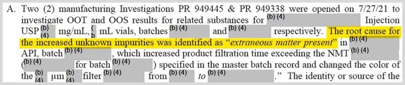 A 2022 FDA inspection report on the Sun factory observed “increased unknown impurities” identified as “extraneous matter” in batches of medication.
