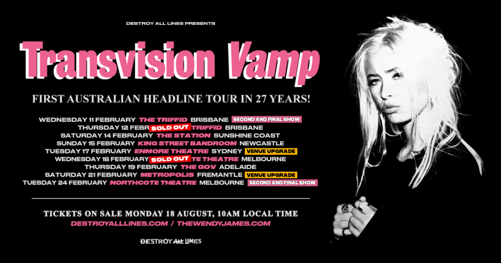 Le groupe britannique Pop Rock Transvision Vamp réalisera son retour australien tant attendu au début de 2025 et marquera sa première visite en près de 30 ans.