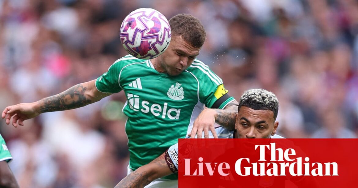 15 min: It’s been an entertaining game so far but the pick of the chances, indeed the only chances, have fallen to Newcastle. From outside the penalty area, Anthony Gordon shoots through a thicket of bodies and his effort takes a deflection off Matty Cash and is helped out for a corner by Marco Bizot. Nothing comes of the set-piece.