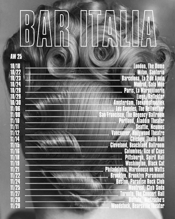 Bar Italia accompagnera le prochain LP avec les dates de tournée britannique, européenne et nord-américaine, y compris une émission de publication de l'album à guichets fermés le 18 octobre. Les billets pour la tournée sont disponibles ici.