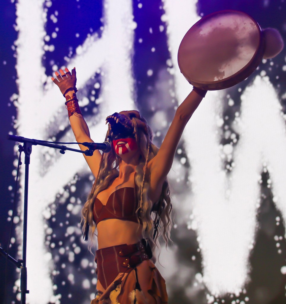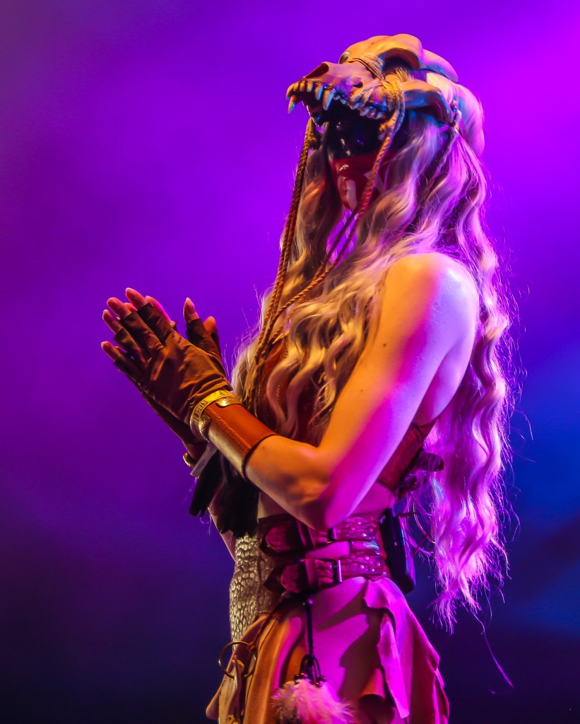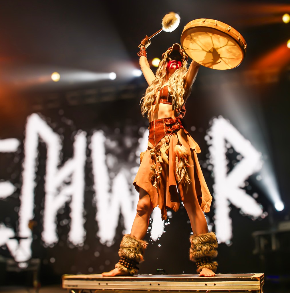 Time for something slightly different on the Sophie Stage, and a performance I had been excited for for many a week leading up to the festival, it was time to embrace some Viking War Trance and the enigmatic Eihwar. From the moment we caught a glimpse of the illustrious duo they absolutely battered our senses, the prominent drum beats attacked our soul and pulled us into the world of the unknown, using their mysterious aura to attract us and then invite us to become addicted to their distinctive blend of pagan and Nordic folk they were an absolutely mesmerising subject to be enthralled and captivated by. Were they the Band of the day for me ?? they weren’t far off!