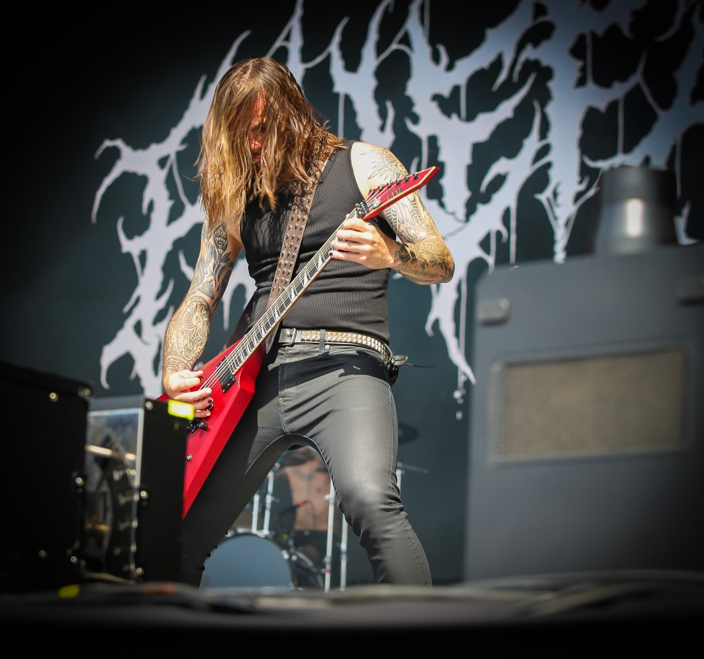 So, time to raise the tempo and bring out some American Thrash by way of Flotsam and Jetsam, and with forty years of Thrashing under their denim it was a true masterclass in how to dispatch the faster things in life. Opening with ‘Hammerhead’ we quickly realised that Flotsam and Jetsam weren’t here to take any prisoners, it was out and out Thrash done in the best way possible. The vocals from Eric were mouthwatering, each word spat out with intent and ferocity while the strings from Gilbert and Conley were mesmeric in the way they danced and entwined with each other while the bass and drums worked perfectly as the titanium backbone gelling it all together. ‘Iron Maiden’ was hypnotic and ‘Primal’ was absolutely flawless, both dispatched as if on an archers arrow heading for the bulls eye hundreds of metres away, both true anthems of how Thrash metal should be constructed and dispatched with the energy and passion which was genuinely on show today. A healthy dose of energy which allowed the pits to grow before our very eyes, this was truly the first real example of how the dust of the Catton Park fields can be kicked up into a cloud almost rhythmic in complete sync to the arts being poured out from the stage. It’s been for too long since these Thrashers last graced the Bloodstock line up, please don’t let it be so long until the next time.