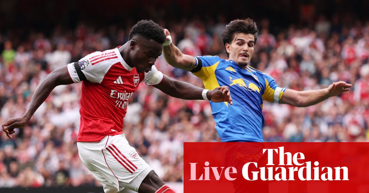 10 min: Arsenal waste another free kick, Odegaard witlessly hoofing it into a crowded box. But the hosts come again. First Calafiori flops over near James, and cheekily claims a penalty. He doesn’t get it. Rice then crosses from the left, but Saka can’t meet it with his head. Leeds finally clear their lines.