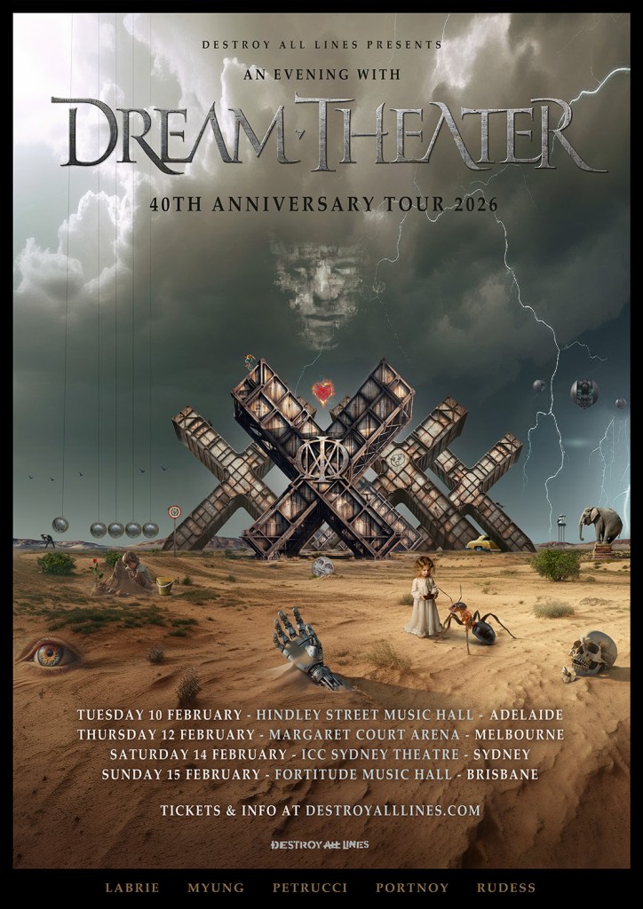 Dream Theatre reviendra en Australie dans le cadre de sa tournée actuelle 40e anniversaire en 2026. Le spectacle marque la première visite du groupe depuis que le batteur Mike Portnoy avec James Labrie, John Myung, John Petrucci et Jordan Rudess ont terminé le noyau d'origine.