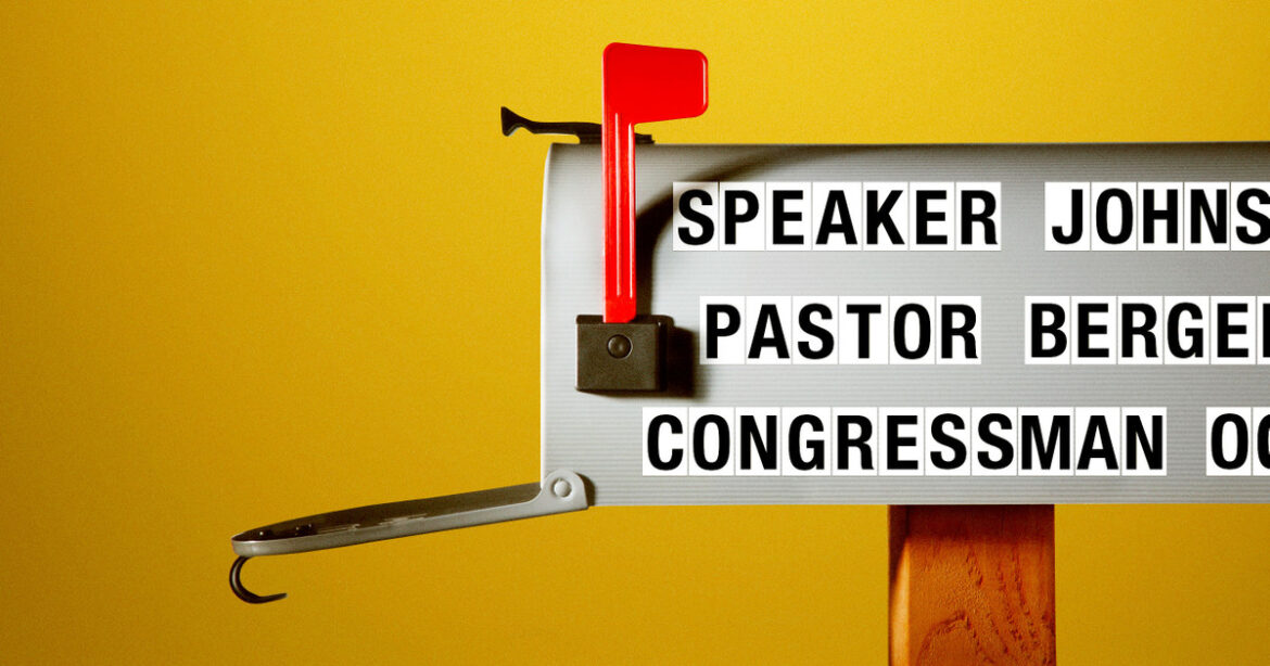 Avez-vous des informations sur Steve Berger, le représentant Andy Ogles ou le porte-parole Mike Johnson? Justin Elliott peut être atteint par e -mail [email protected] et par signal ou WhatsApp au 774-826-6240. Josh Kaplan peut être atteint par e -mail [email protected] et par signal ou WhatsApp en dessous du 734-834-9383.