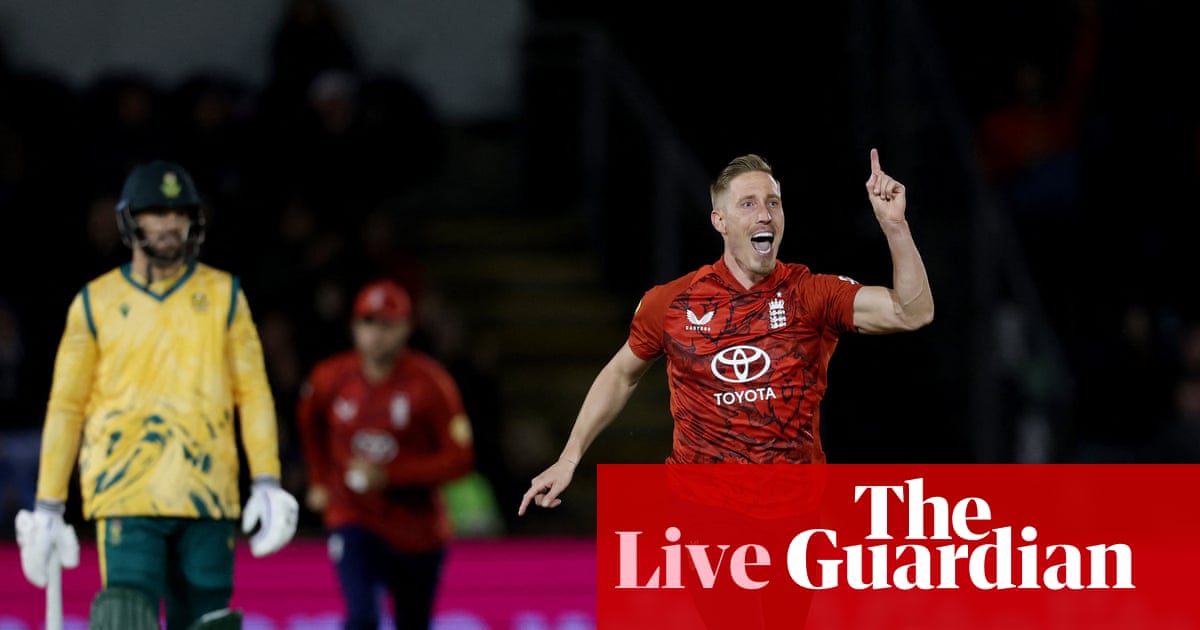 2nd over: South Africa 20-1 (Markram 14, Pretorius 2) The other new-ball bowler is Jamie Overton, more often used as a mid-innings enforcer. Mind you, the middle of this innings is only minutes away. JOverton starts with a beauty, beating Markram with some nippy outswing. Then there’s a half-chance as Markram hits a skyer and Will Jacks doesn’t run back sharply enough. Markram rubs it in by hitting the next ball for six – and he’s caught by a guy in the crowd, who is suitably delighted.