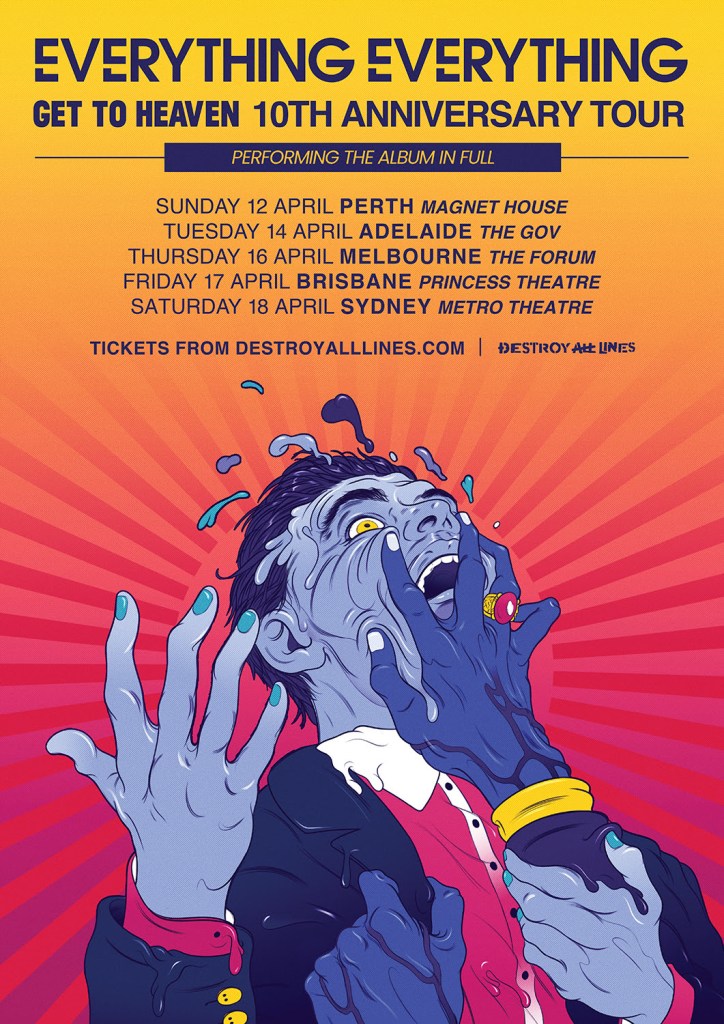 La tournée commence le 12 avril dans la maison Magnet de Perth avant de se terminer à travers Adelaide, Melbourne, Brisbane et le 18 avril au Metro Theatre de Sydney à Sydney. Les billets seront vendus le vendredi 19 septembre à 9 h sur la destruction de toutes les lignes.