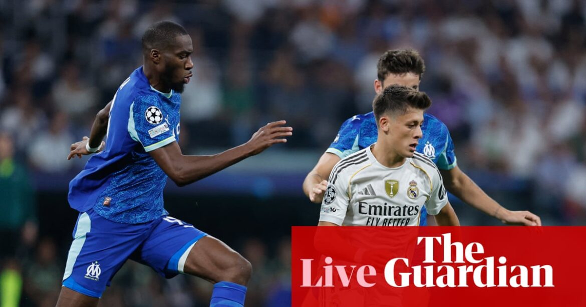 14 min: Real Madrid 0-0 Marseille Une rare pause de Marseille mène presque au but d'ouverture. Timothy Weah tourne Carvajal vers l'extérieur et tire un coup sur la barre.
