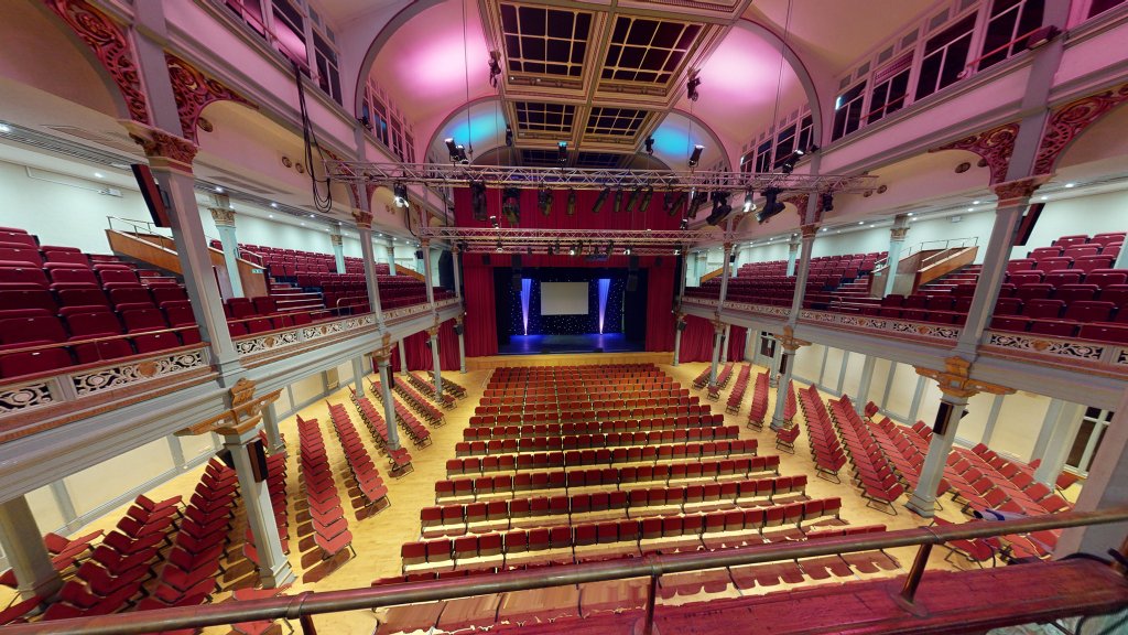 Nous exploitons une installation à trois étages; La scène principale de Grand Hall (voir illustration ci-dessous. Veuillez noter que les sièges pour la forteresse sont supprimés), l'océan Room et une troisième scène de sièges, dans laquelle une nouvelle gamme de synthés de donjon pour dimanche et notre forum annuel régulier se déroule samedi. Notre deuxième et troisième phase est inférieure à la scène principale.