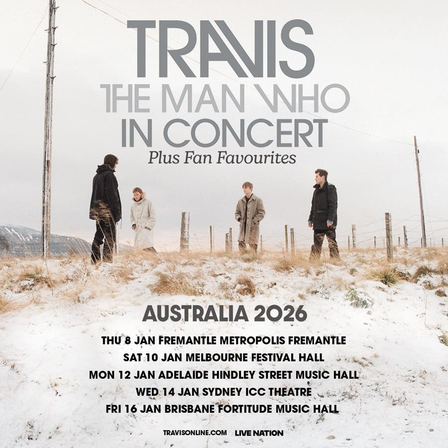Ce fut une longue attente d'attente écossaise à l'ancien rock Travis, Travis, retourne enfin en Australie. Pour la première fois depuis sa vente en 2001, le Brit Winner Band enregistrera nos étapes en janvier 2026 et interprétera leur album révolutionnaire L'homme qui En en plus des faits saillants d'une carrière qui a défini une génération.