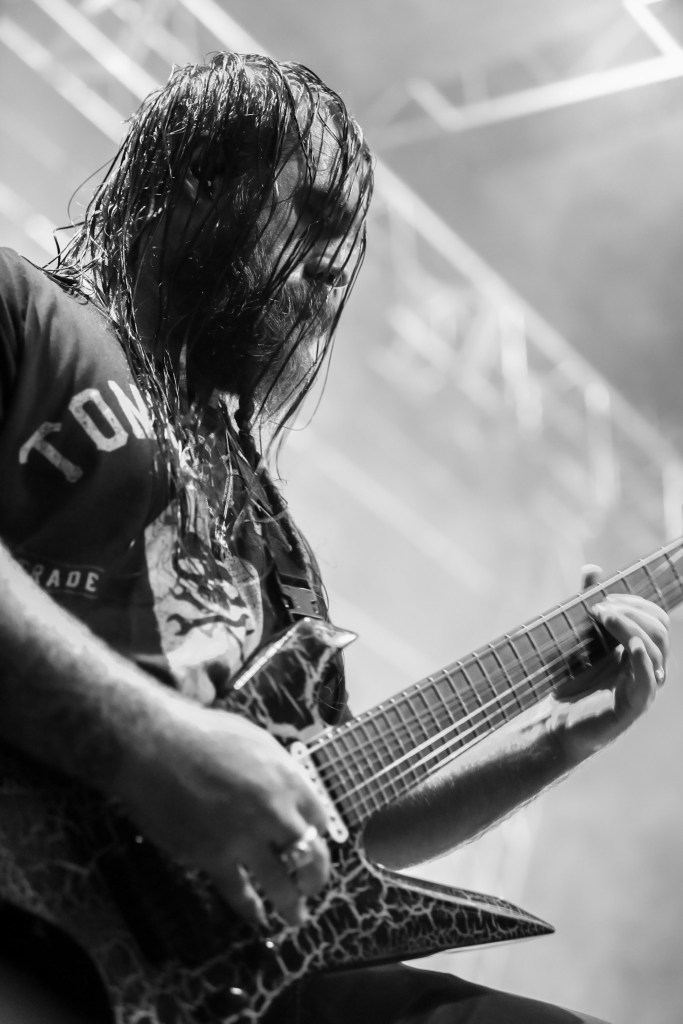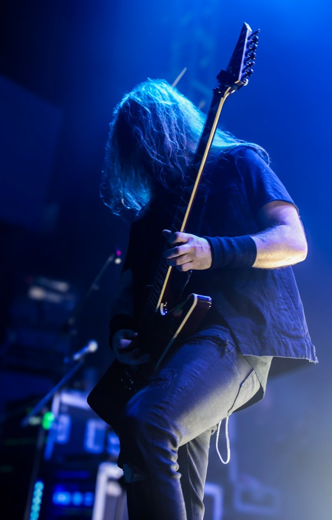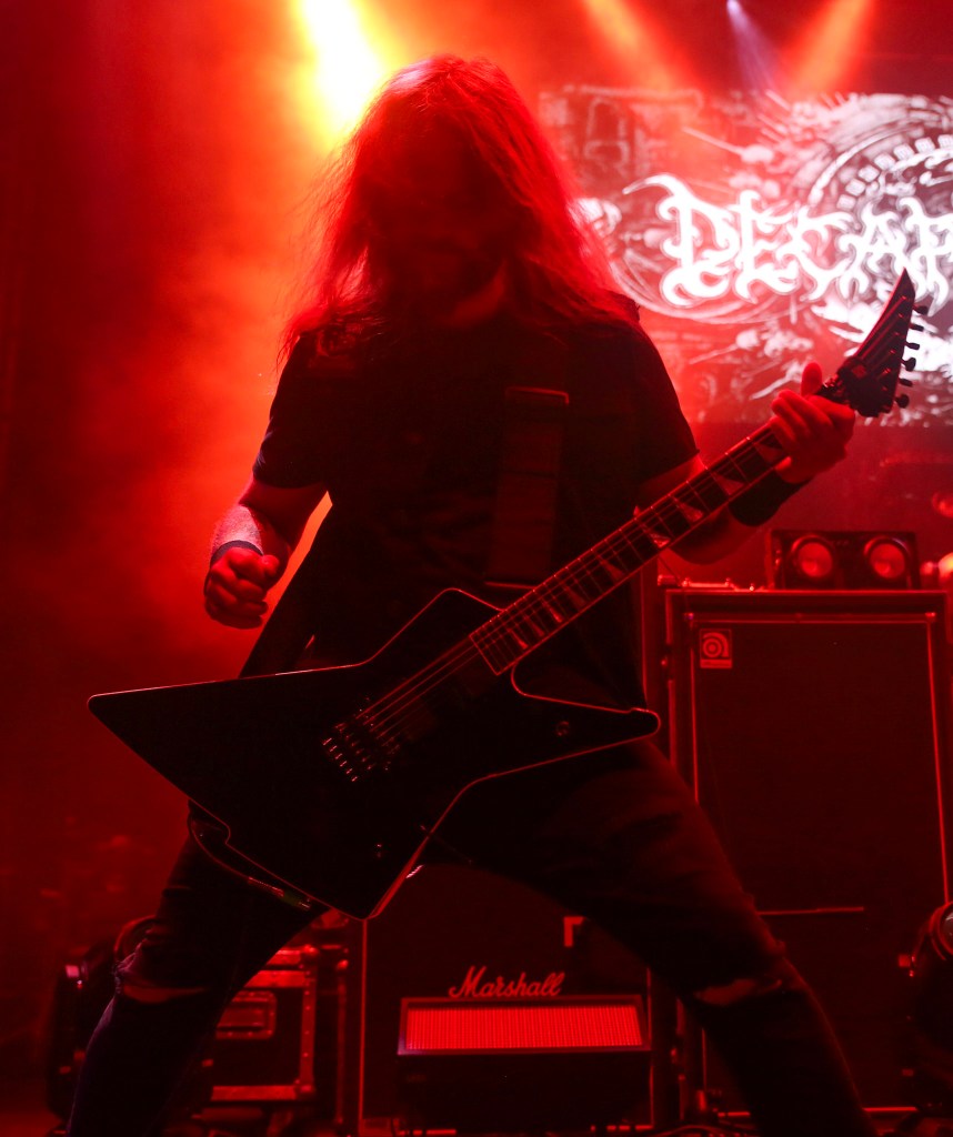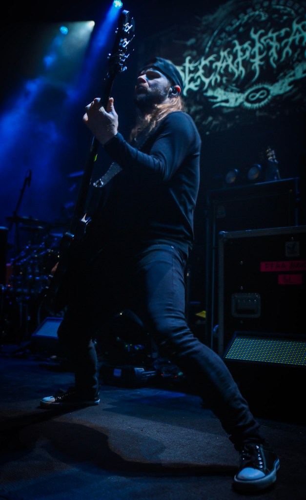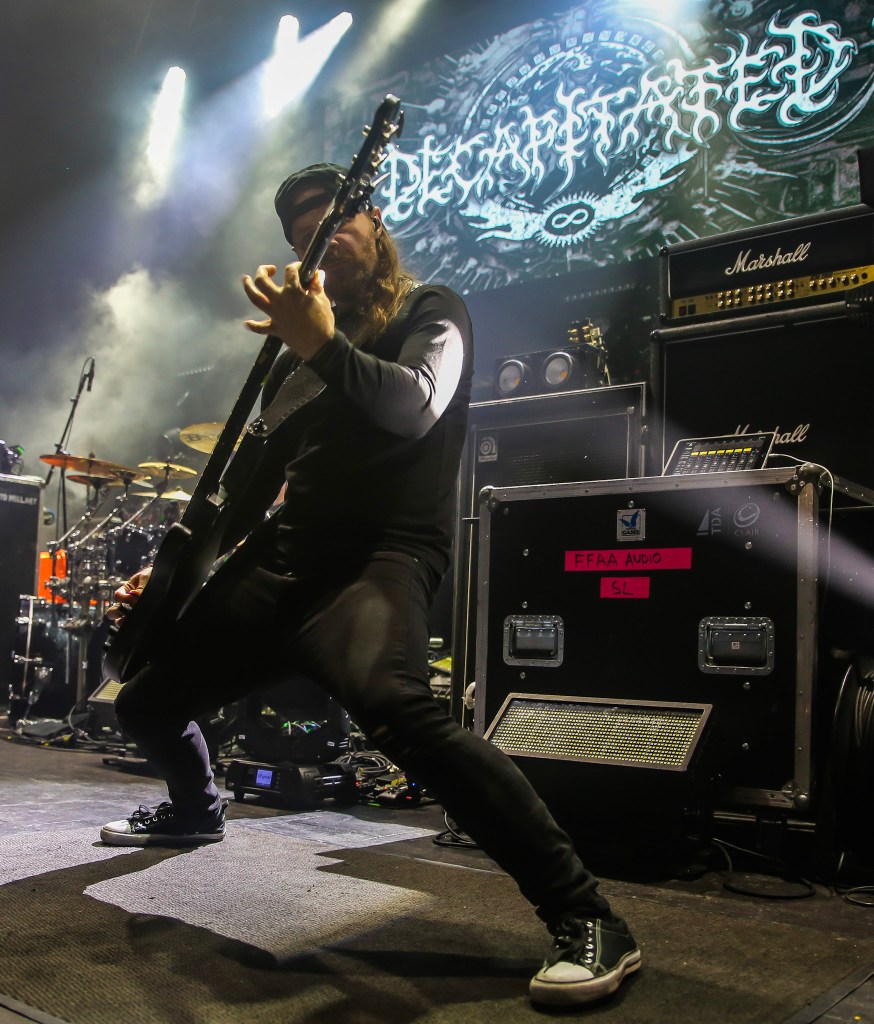 La soirée a donc commencé avec le death metal technique polonais et les maîtres de leur métier Décapité. Dès l'instant où ils sont montés sur scène, ils nous ont complètement époustouflés, le chant était rauque et puissant, les guitares étaient techniques et perçantes et les cordes plus épaisses et la batterie ressemblaient à des carcasses de titane auxquelles pendaient les autres membres. Le set était assez court, mais brutal et barbare d'un bout à l'autre, et le public l'a absorbé, récompensant dûment les efforts sur scène par leurs propres démonstrations physiques d'appréciation, avec des corps volants et des fosses brûlant spontanément partout sur le sol. La voix de Bodde était féroce et sa stature sur scène était puissante et charismatique, tandis que les cordes de Vogg étaient fascinantes avec chaque accord et riff qu'il déchaînait. Pasek a adopté sa position habituelle, martelant sa basse avec une précision technique et une passion exubérante, et “Spheres Of Madness” a semblé être un catalyseur pour que la machine Decapitated les amène à un niveau où les hordes de lieux ont ensuite rendu la pareille dans une démonstration d'appréciation mutuelle pour l'art qui se construisait au-dessus d'eux. Alors que le set touchait à sa fin, de nombreuses âmes étaient meurtries et complètement épuisées, et ce n'était que le premier plat, l'amuse-bouche si vous voulez, de ce banquet décadent de musique extrême dont nous profitions.