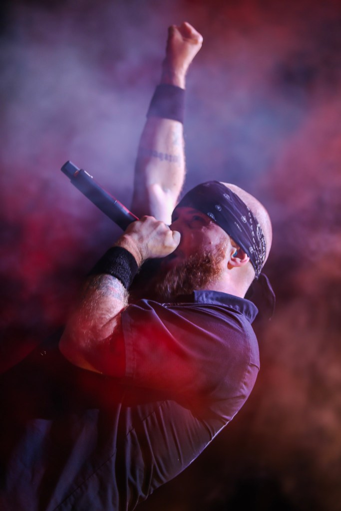 Alors que les lumières s'éteignaient une dernière fois et Engager le Killswitch ont infiltré la scène avec un enthousiasme absolu, l'énergie émanant de ces gars rappelait celle d'une tornade dévastant une paisible ville américaine. “Strength Of Mind” était l'ouverture parfaite, toxique et caustique tout en libérant d'énormes quantités d'énergie sur tout ce qui se mettait en travers de leur chemin. “Reckoning” et “Aftermath” étaient des tyrans absolument écoutables et Jesse Leach semblait affamé d'un désir de perfection brutale, sa voix tout aussi brute et veloutée, tandis que D'antonio manipulait sa basse avec muscle et passion comme s'il était un partenaire de danse et ils interprétaient une valse venimeuse. Au fur et à mesure que le set avançait, Dutkiewicz semblait s'amuser davantage (si cela était même possible par rapport à l'expression d'accomplissement qu'il avait arborée depuis le début du set), et le public était dûment reconnaissant, renvoyant son appréciation sur la scène. Cet ensemble avait le pouvoir de voir même une plongeuse de scène, Leach, au début de la fête, et était une tête d'affiche qui pourrait potentiellement la voir dans des salles plus grandes lors de sa prochaine tournée. Killswitch augmente rapidement sa base de fans et étant donné la performance de ce soir, vous pouvez certainement comprendre pourquoi.
