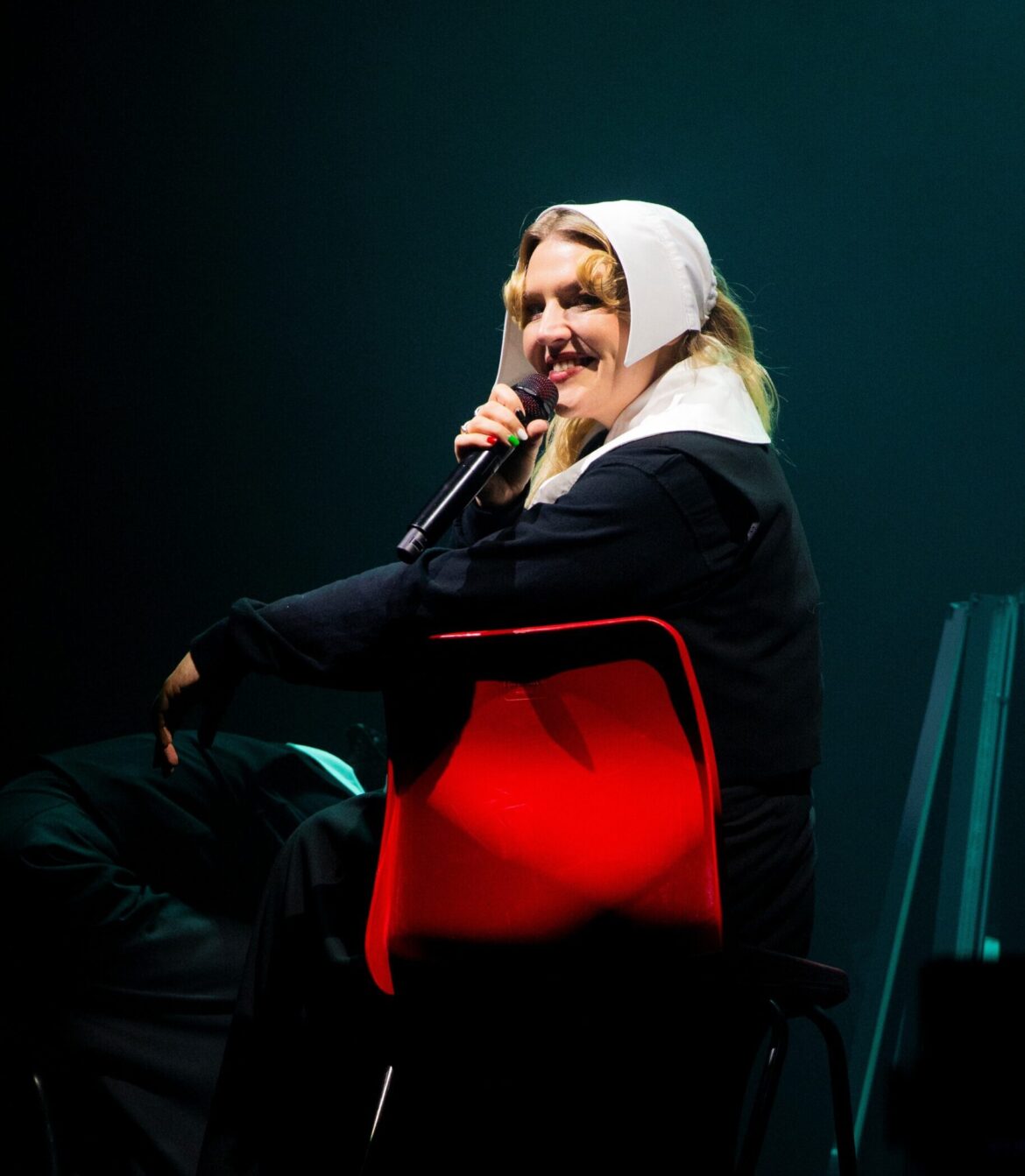 Tournez-vous vers la parole et ouvrez-vous Je le fais et je m'en fichela performance commence, en passant par la chorégraphie précise Mère Et Mensonge. Cette dernière voit Nadine Shah revenir sur scène pour reprendre le rôle qu'elle jouait sur l'album.