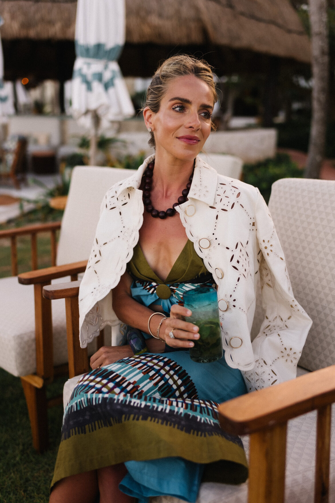 Veronica Beard Jacket, Silvia Tcherassi Top & Rock, Delvaux Bag (similaire à ici), Miu Miu Sandals et Ben Amun Halkette (similaire ici)