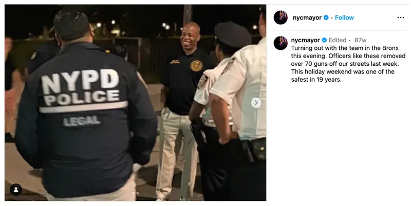 In 2023, for example, Pontillo wrote a scathing internal audit after finding that some CRT officers were wrongfully stopping New Yorkers and failing to document the incidents. Weeks later, the mayor took to Instagram to boost the unit. “Turning out with the team,” he wrote, showing a photo of him wearing a wide smile and khaki pants, CRT’s official uniform.
