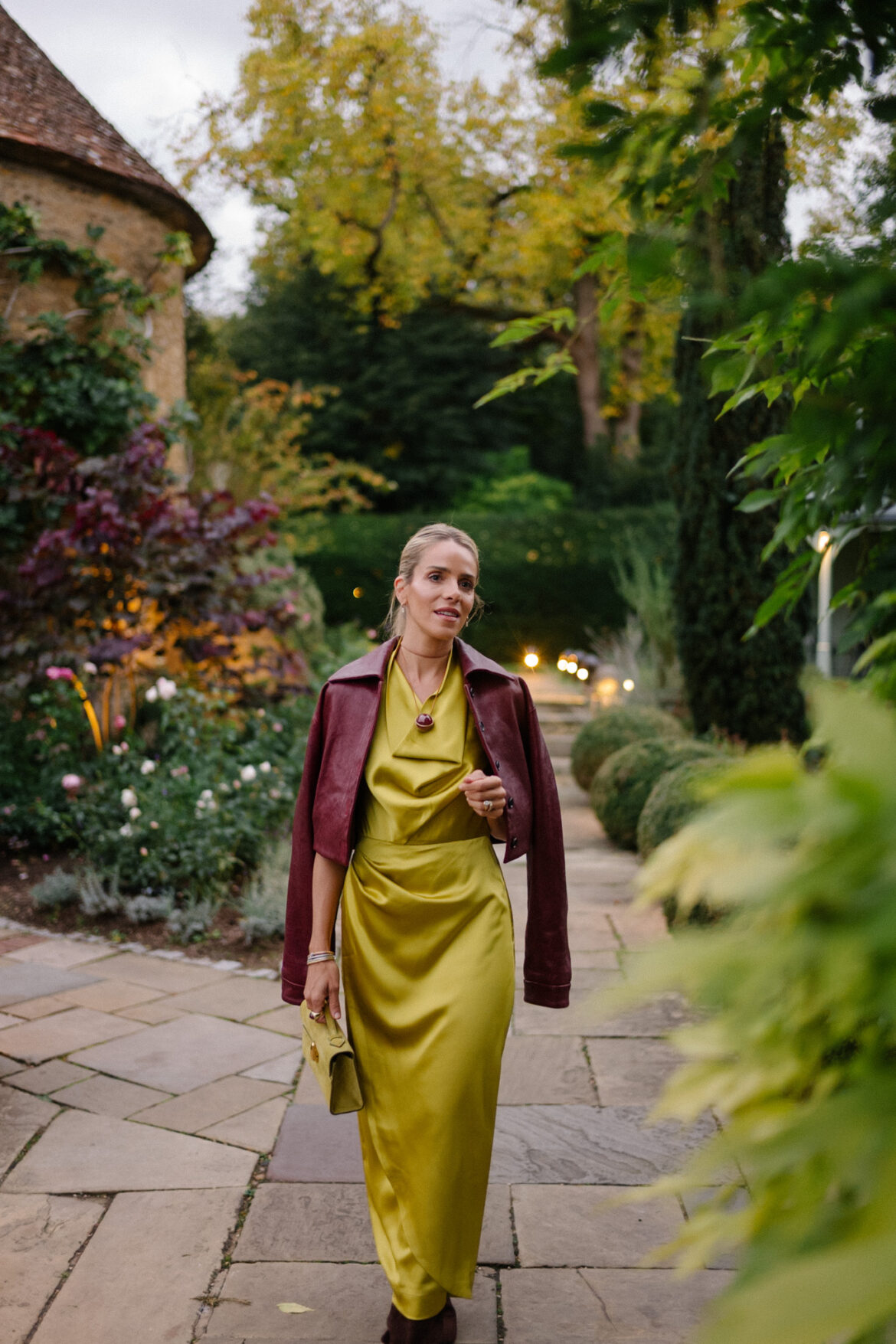 Veste Khaite (ancienne, similaire ici et ici), robe Tuckernuck, collier Marissa Klass, sac Savette (épuisé, similaire ici), bottes Aquazzura (j'adore ça ici aussi)