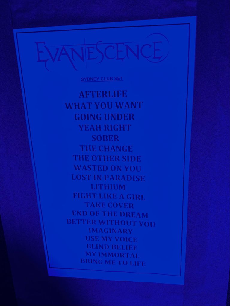 Au Metro Theatre, l'atmosphère est étrangement intimiste pour un groupe dont le son est conçu pour les arènes caverneuses. Evanescence monte sur scène avec le poids de l'histoire derrière eux et une autre étape devant eux : demain, ils soutiennent Metallica à l'Acer Arena de Sydney, mais ce soir, c'est de plus près et plus personnel pour les fidèles.