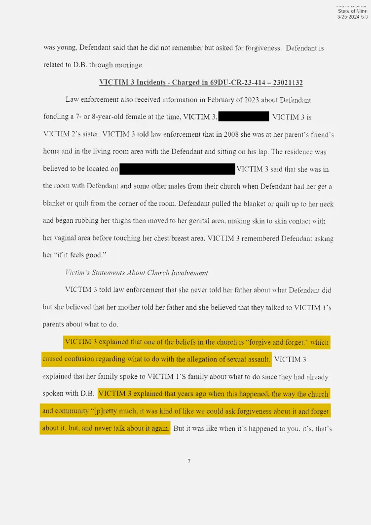 - Forgive and Forget: Church leaders held meetings where children were told to forgive the man who sexually abused them and forget the abuse. If they spoke of it, the sin would be theirs.