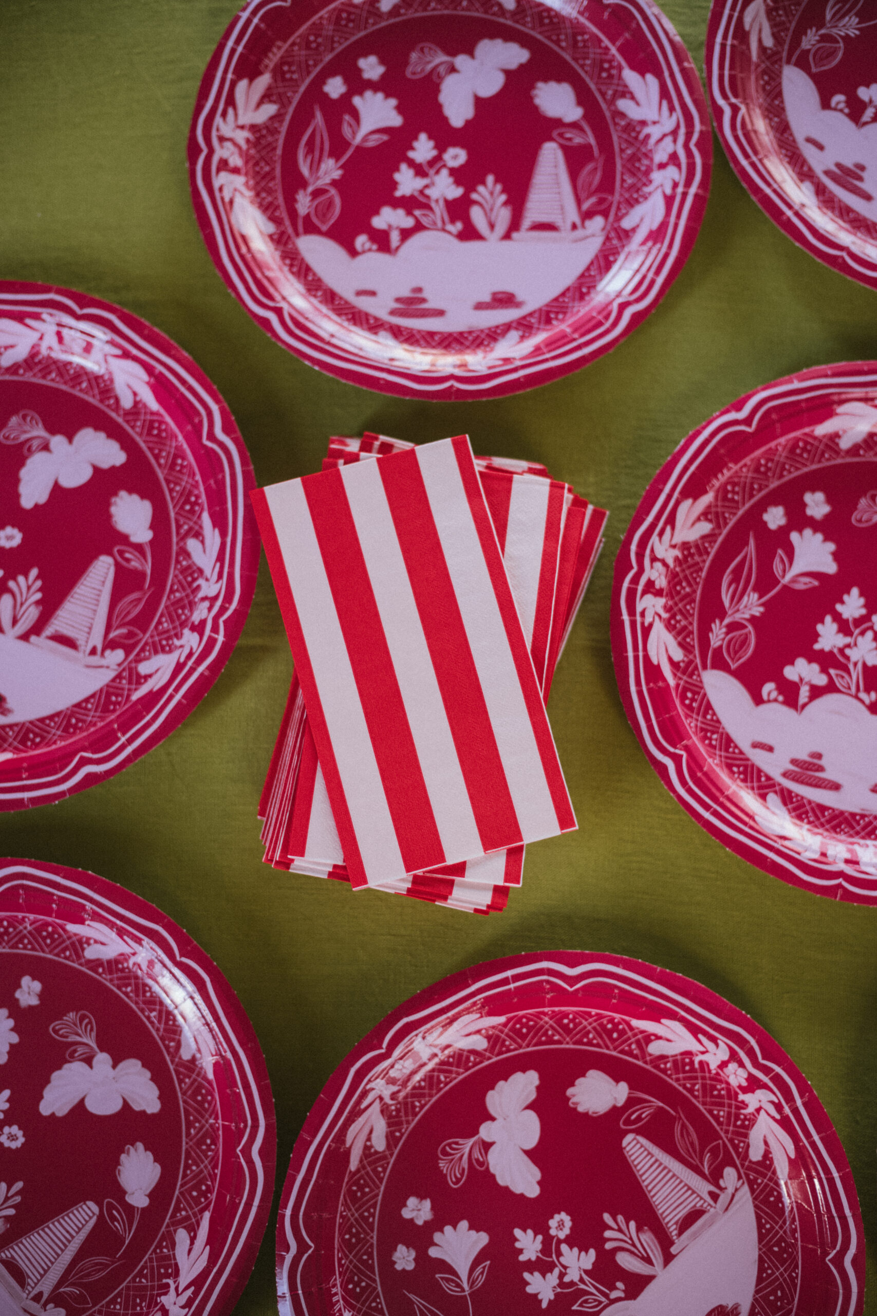 Assiettes, serviettes, pyjamas, bouteille d'eau