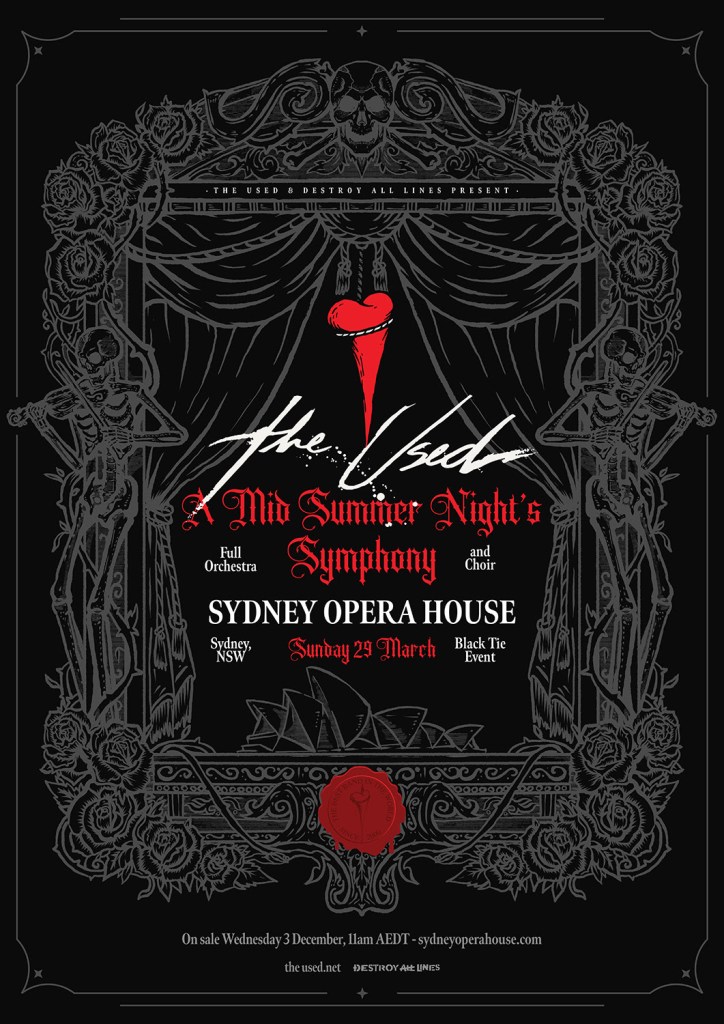 “L'Opéra de Sydney est l'un des lieux les plus prestigieux au monde. Il s'agit d'une opportunité unique pour The Used et nous ne pourrions être plus enthousiastes.” –Bert McCracken