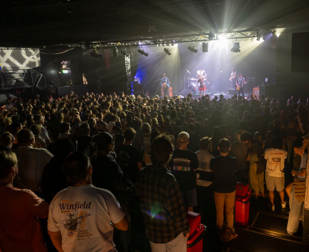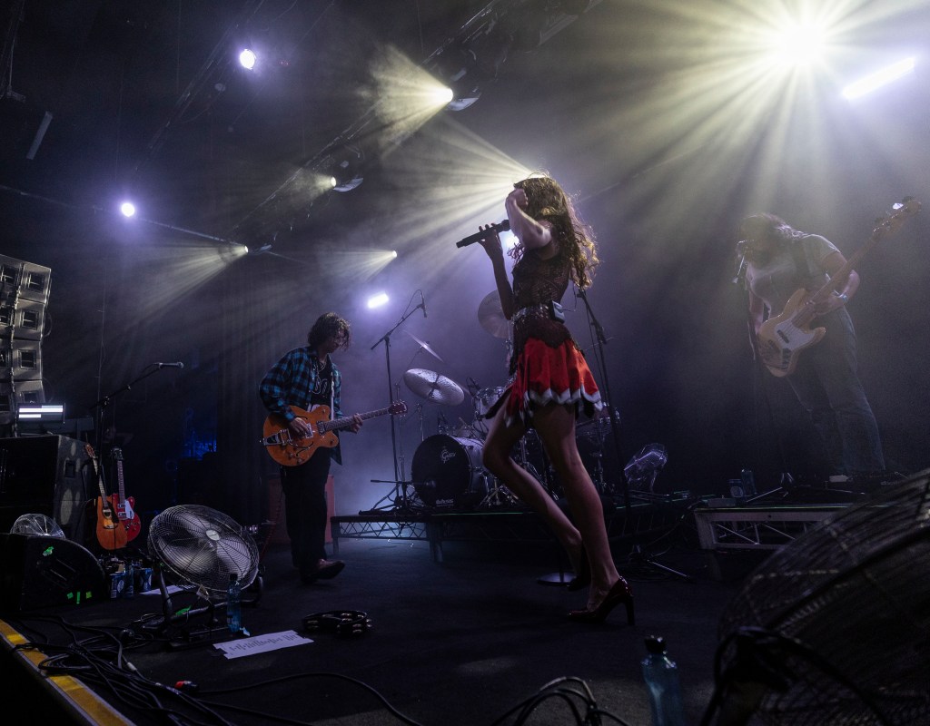 Le Metro Theatre de Sydney transpire dans sa propre époque ce soir alors que le Bar Italia arrive en ville avec un album nommé d'après un film dans lequel Marilyn Monroe et deux musiciens désespérés en costume fuient la foule. Et honnêtement,Certains l'aiment chaudCela semble être le titre idéal pour un groupe qui semble s'adapter à n'importe quelle peau, époque ou température émotionnelle que le moment exige. Sur scène, ils sont une torche à trois têtes – Nina Cristante, Jezmi Tarik Fehmi et Sam Fenton – chacune brûlant à une fréquence différente mais produisant d'une manière ou d'une autre une seule chaleur rougeoyante.