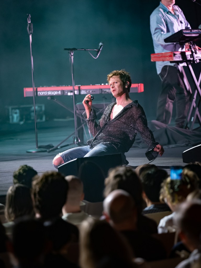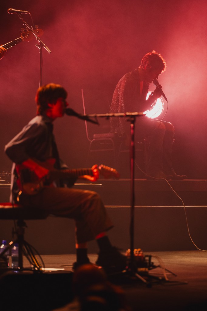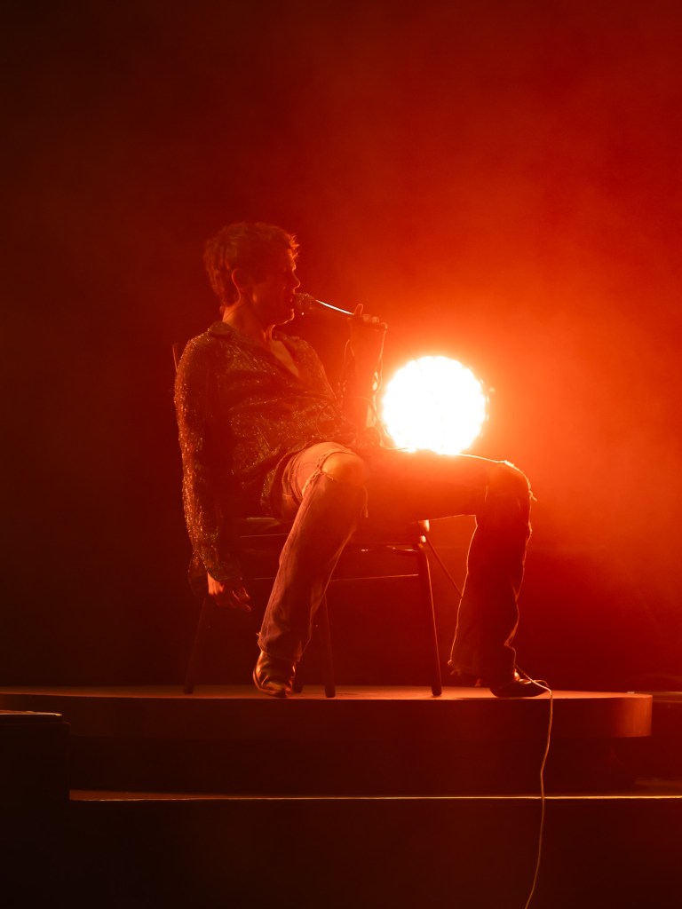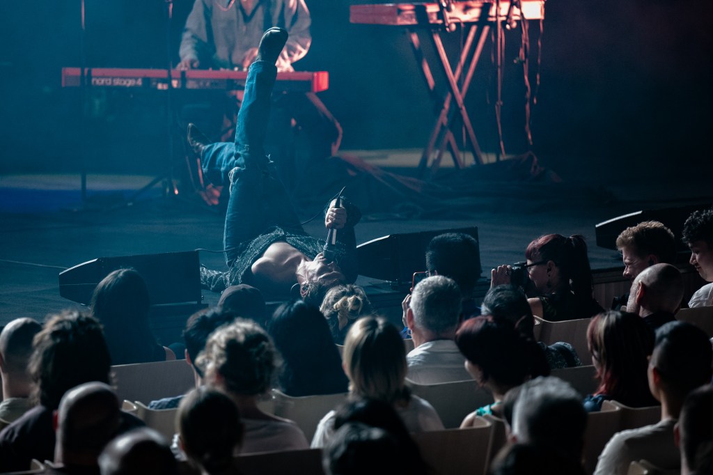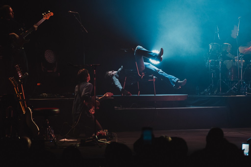 La setlist commençait par « In a Row », « It's a Mirror » et « Left for Tomorrow ». Assez rapidement, le son fut dépassé par les images les plus étranges. Hadreas se déplaçait comme un artiste burlesque, se tordant, s'effondrant et se pliant sur une chaise rotative avant de tomber au sol. À un moment donné, il s'est traîné jusqu'au bord de la scène, s'est suspendu la tête en bas et a regardé le premier rang. Cela semble ridicule écrit, même si c'était complètement captivant sur le moment et que personne ne pouvait détourner le regard.