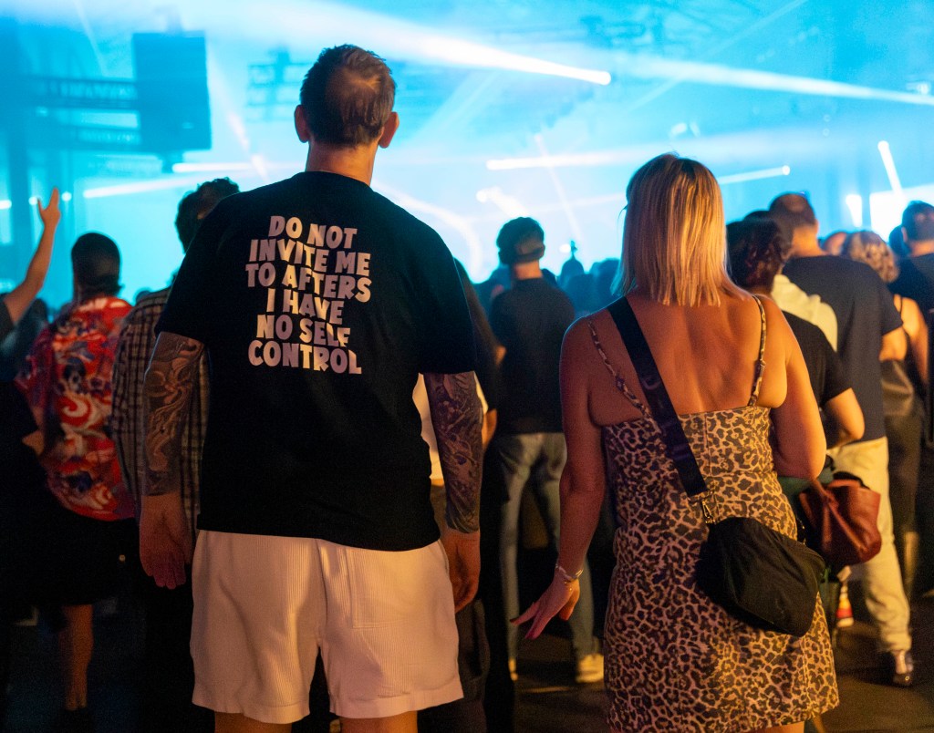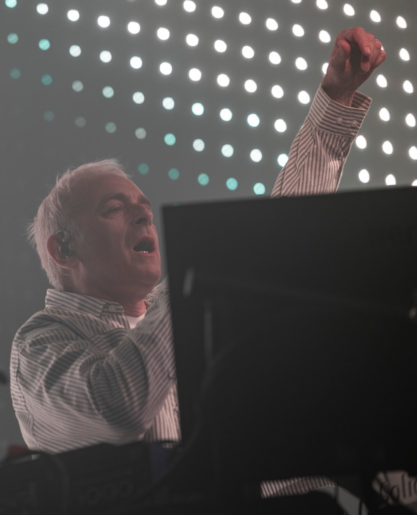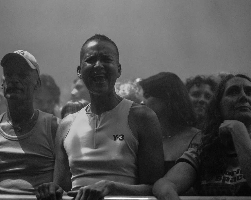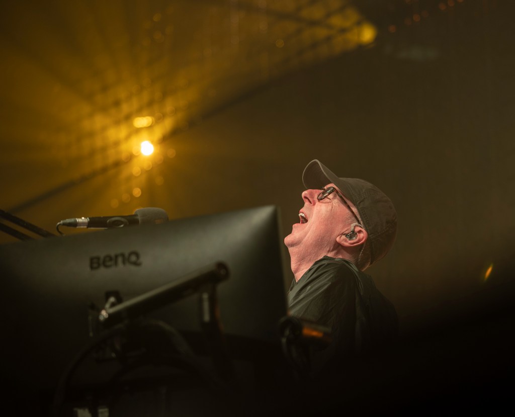 Karl Hyde et Rick Smith restent en grande partie cachés derrière des écrans et des appareils géants, n'apparaissant qu'occasionnellement et brièvement dansant avant de disparaître à nouveau dans les machines. Les photographier s’avère difficile, mais cela semble presque accessoire. La présence d'Underworld n'a jamais été autant une question de visibilité qu'une question d'immersion, et la foule remplit le reste. De l'homme qui porte une chemise qui dit « Je suis invisible » à Vern Posant fièrement à côté des graffitis portant son nom, devant un danseur aux vêtements clairs et aux arcs de yo-yo tournant, le public prend part au spectacle.